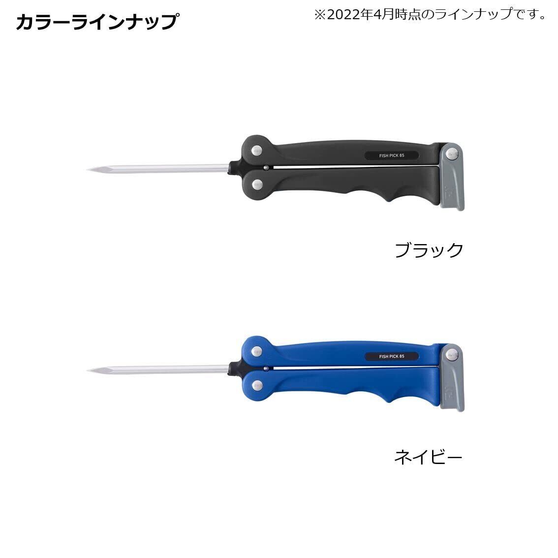 ダイワフィッシュピック 85◆カラー:ブラック/ネイビー魚やイカを〆る、氷を砕く、オキアミを崩すなど、使い方はいろいろ。刺さりが良い先端部4面カット形状。セーフティロック付き。サビに強いステンレス鋼。