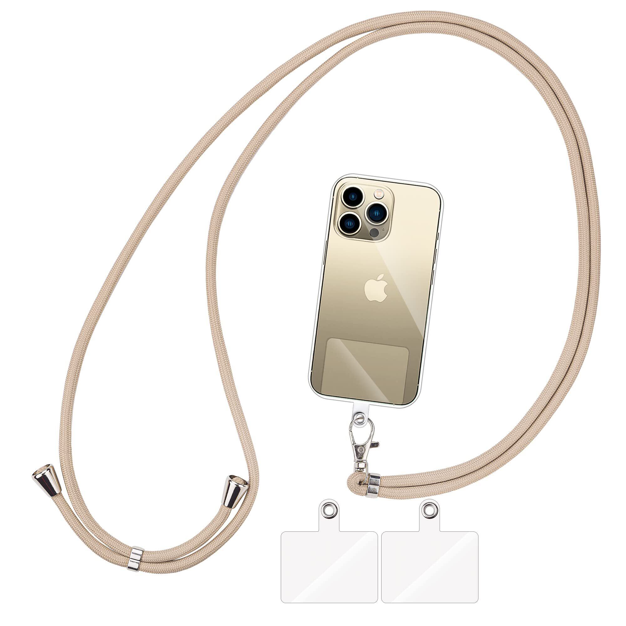 [AOKKR] スマホストラップ 首掛け, ショルダーストラップ 1本+透明タグパッチ3枚入り ネックストラップ 肩掛け用 ロング 携帯ストラップ 斜めがけ 首から下げる 長さ調整可能 忘れ物防止 スマホ紛失予防に 全機種対応 [ベージュ]