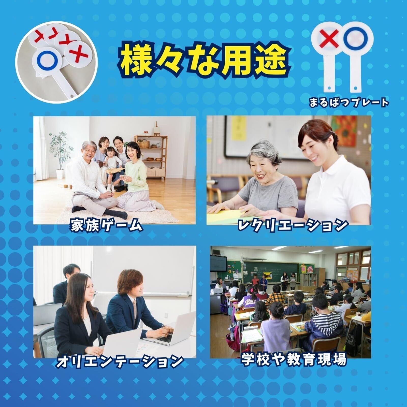 巣ごもり、自粛の中、家族でのだんらんの時、ゲームに使用する○×アンサープレートです。笑顔の絶えない有意義な時間になることでしょう。