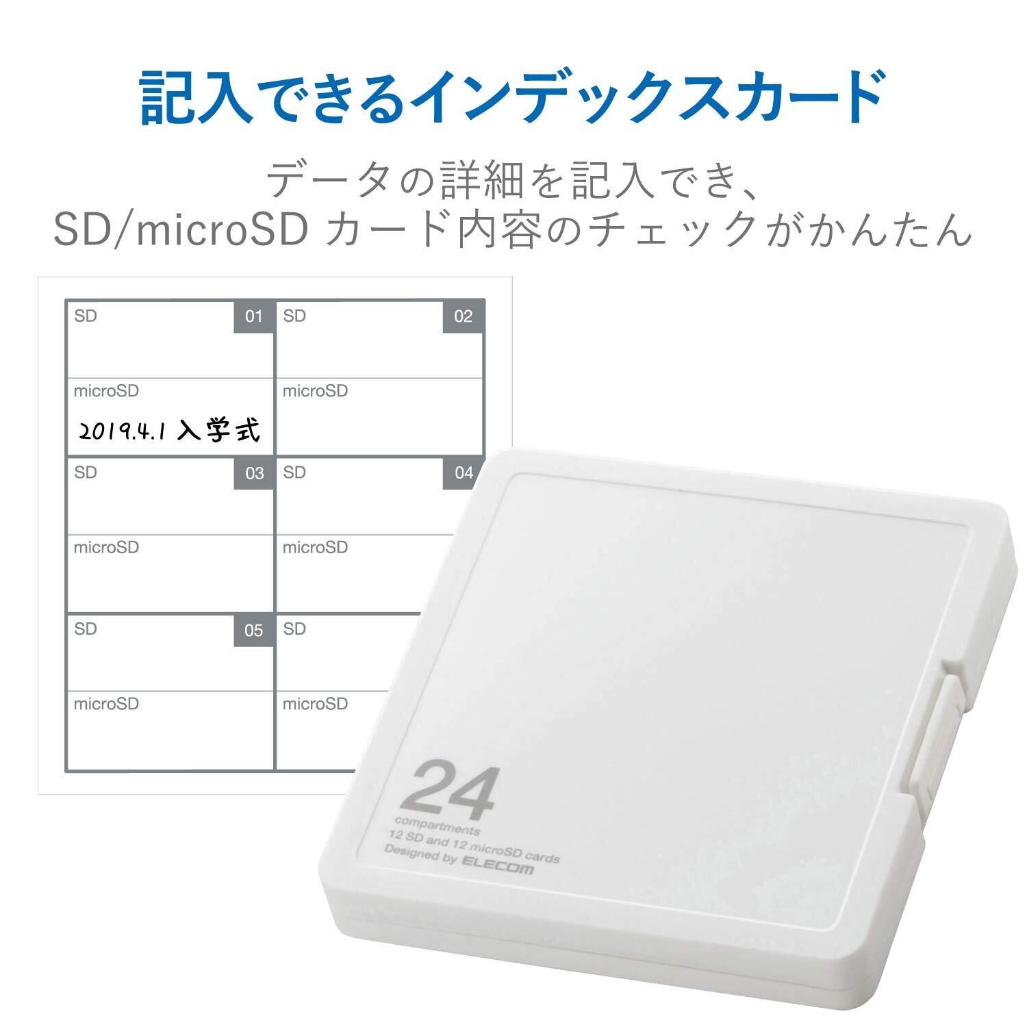 エレコム(ELECOM) メモリカードケース SD ケース プラスチック SD12枚 + microSD12枚収納 ホワイト CMC-SDCPP24WH