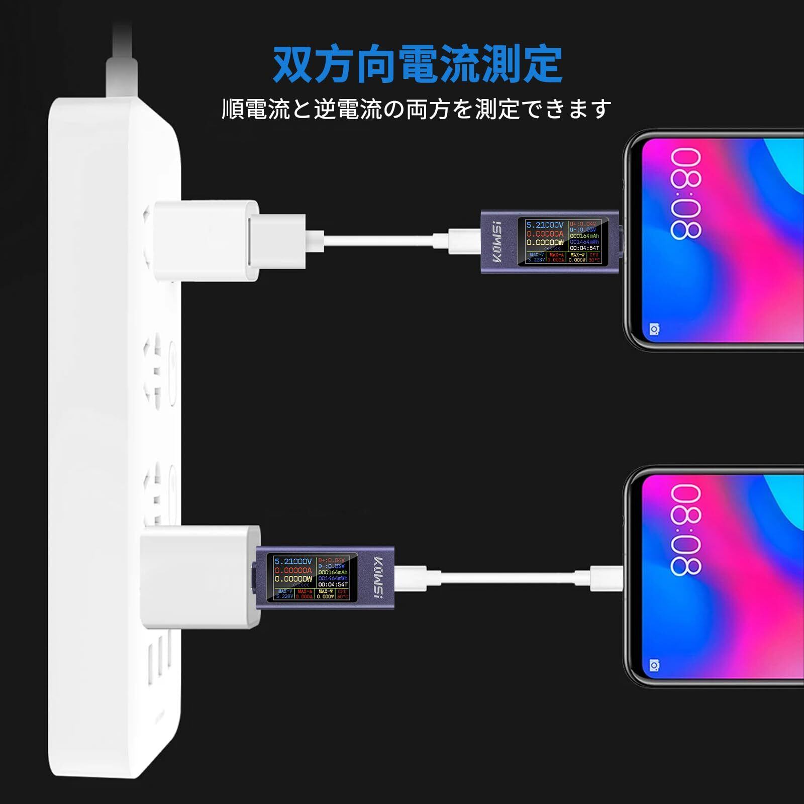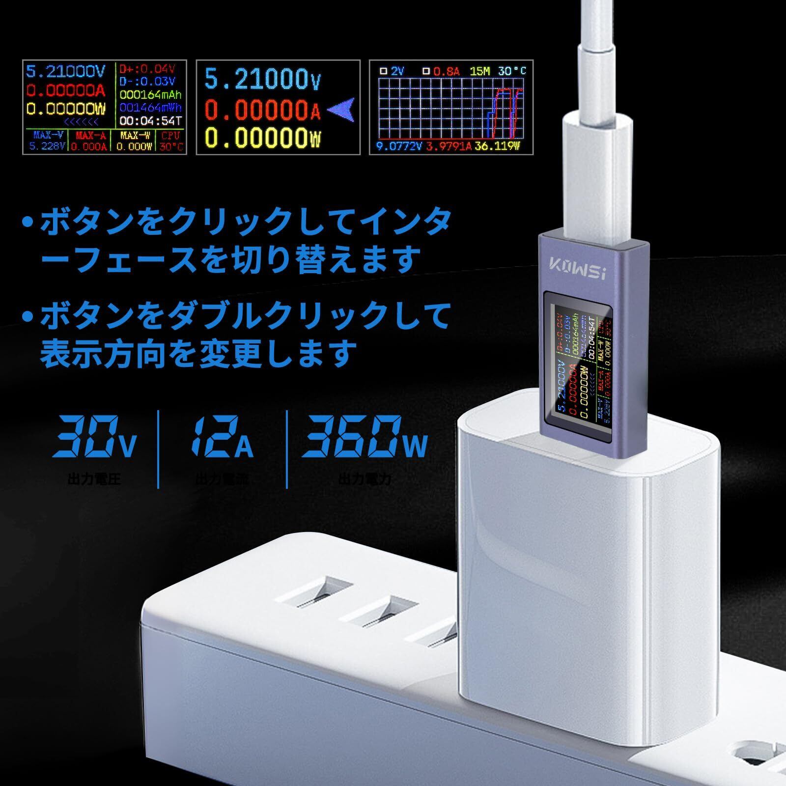 電流 電圧チェッカー、双方向 USB C パワーメーター USB C テスター、USB マルチメーター 4-30V 0-12A 電圧電流容量エネルギーパワーデジタルテスターカラーディスプレイ5 桁の高精度