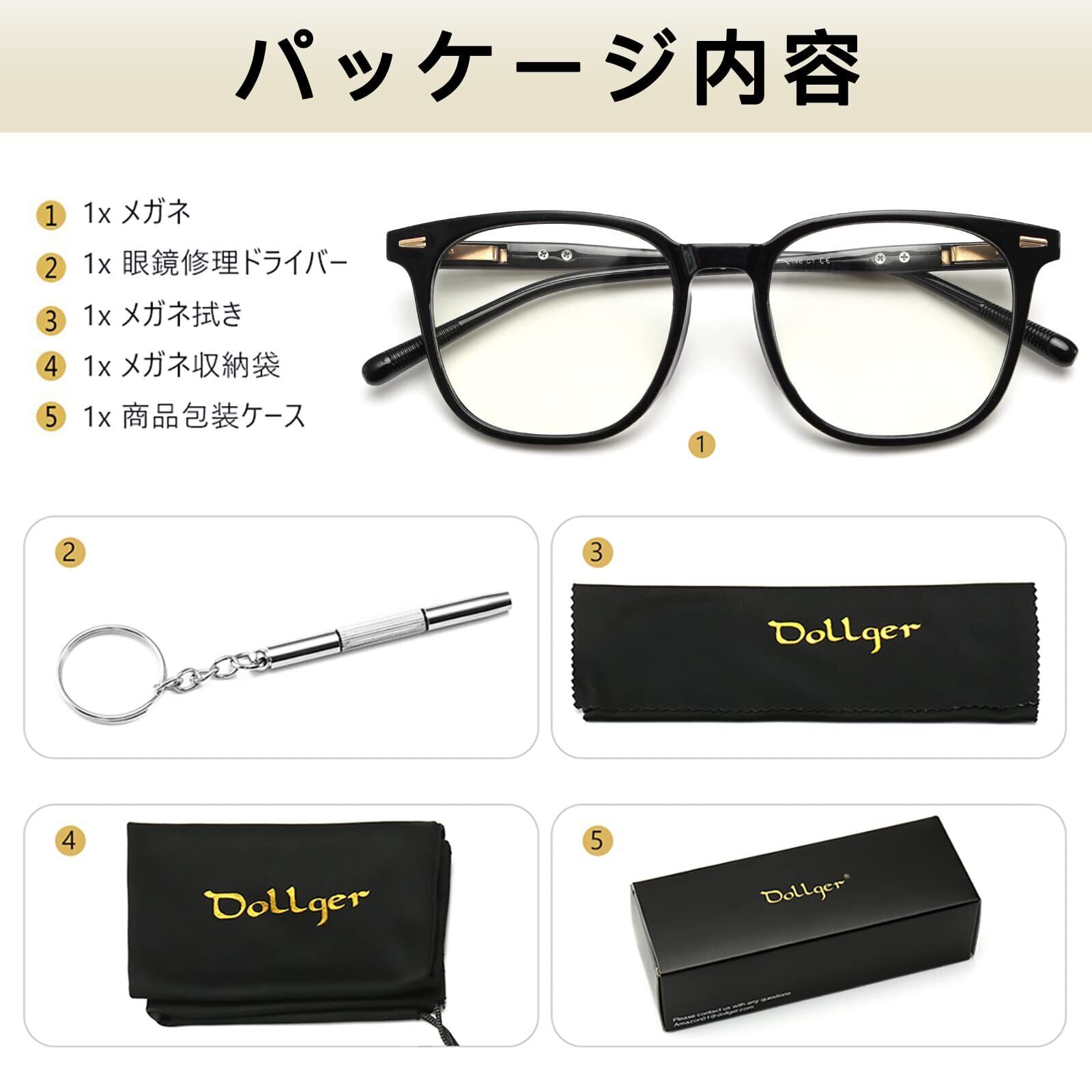 [Dollger] ブルーライトカットメガネ 伊達メガネ ブルーライトカット メガネ 度なし 軽量 紫外線カット UVカット PCメガネ だてめがね おしゃれ ウェリントン型 ファッション レディース メンズ ブラック