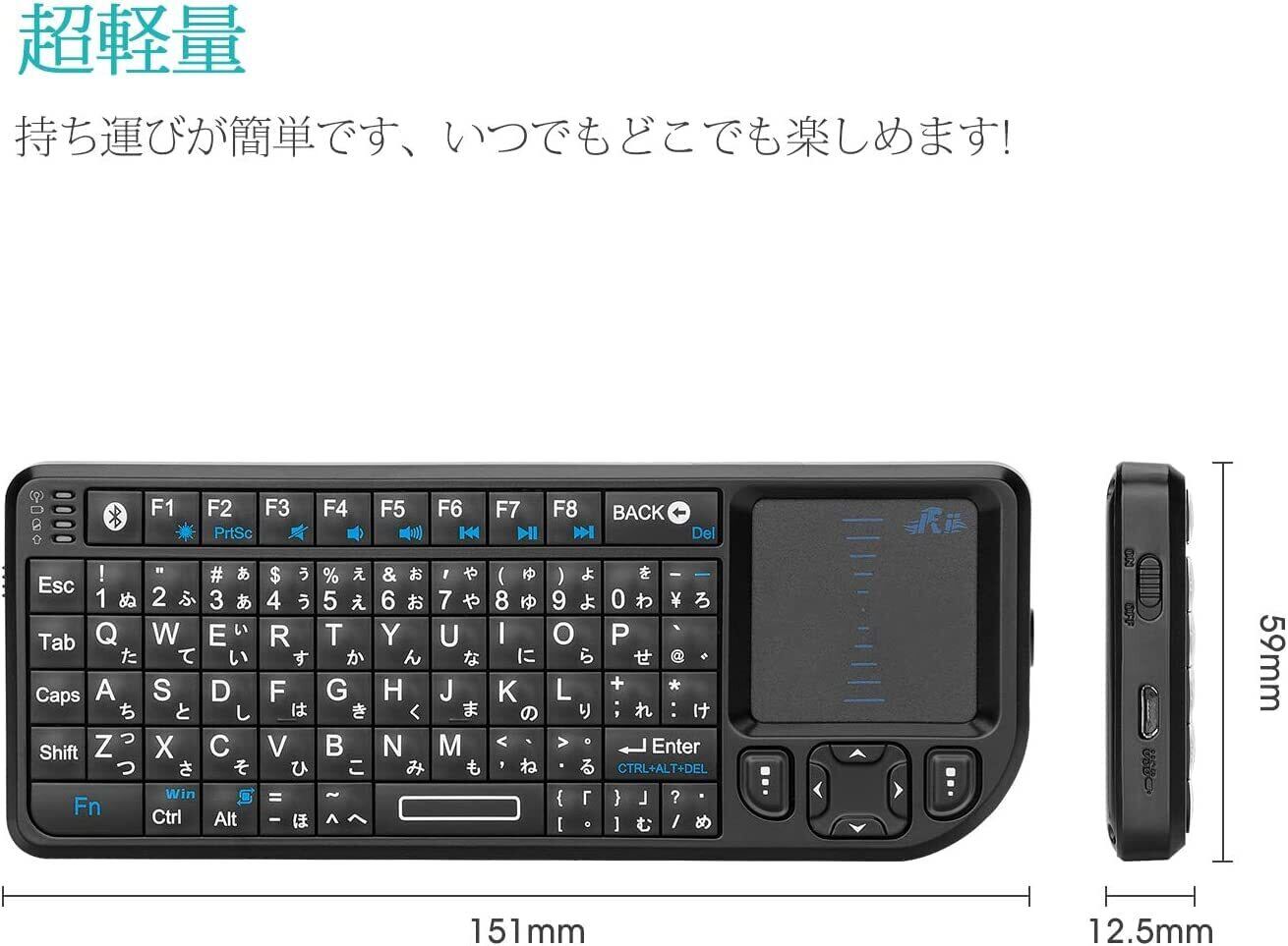 Rii ワイヤレスキーボード bluetooth キーボード 日本語配列 2.4GHz USBレシーバー付属 超小型 タッチパッド搭載 ミニキーボード 無線 Mini Bluetooth keyboard 充電式 バックライト 応急LEDライト付き ipad/IOS/Android/パソコン等に対応 (72キー)