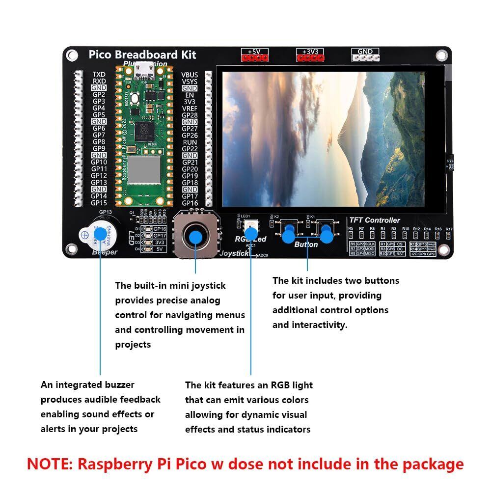 GeeekPi GPIO 拡張モジュール、3.5 インチ スクリーン付き、Raspberry Pi Pico 1/Pico 1 W および Raspberry Pi Pico 2 シリーズ用