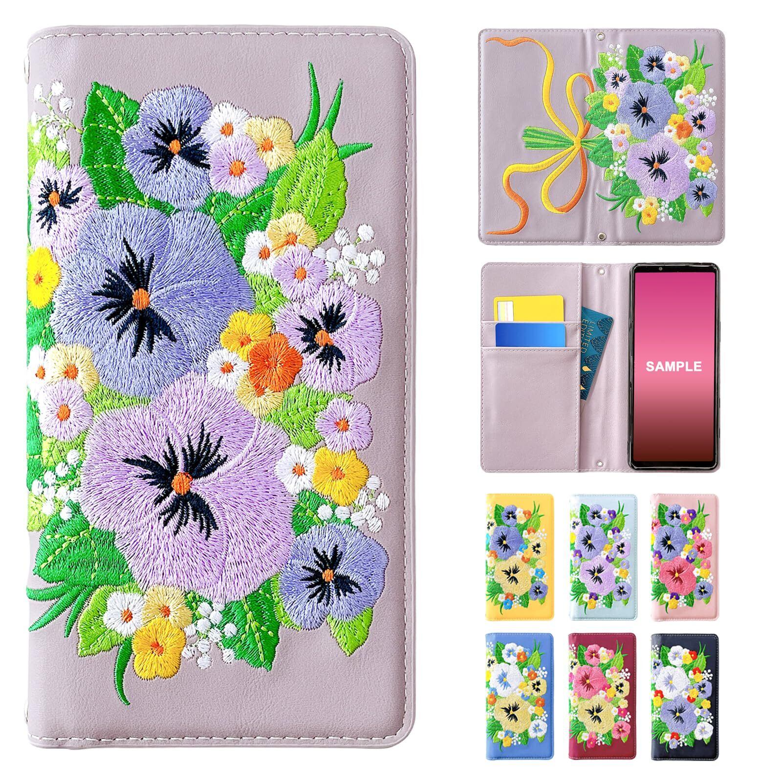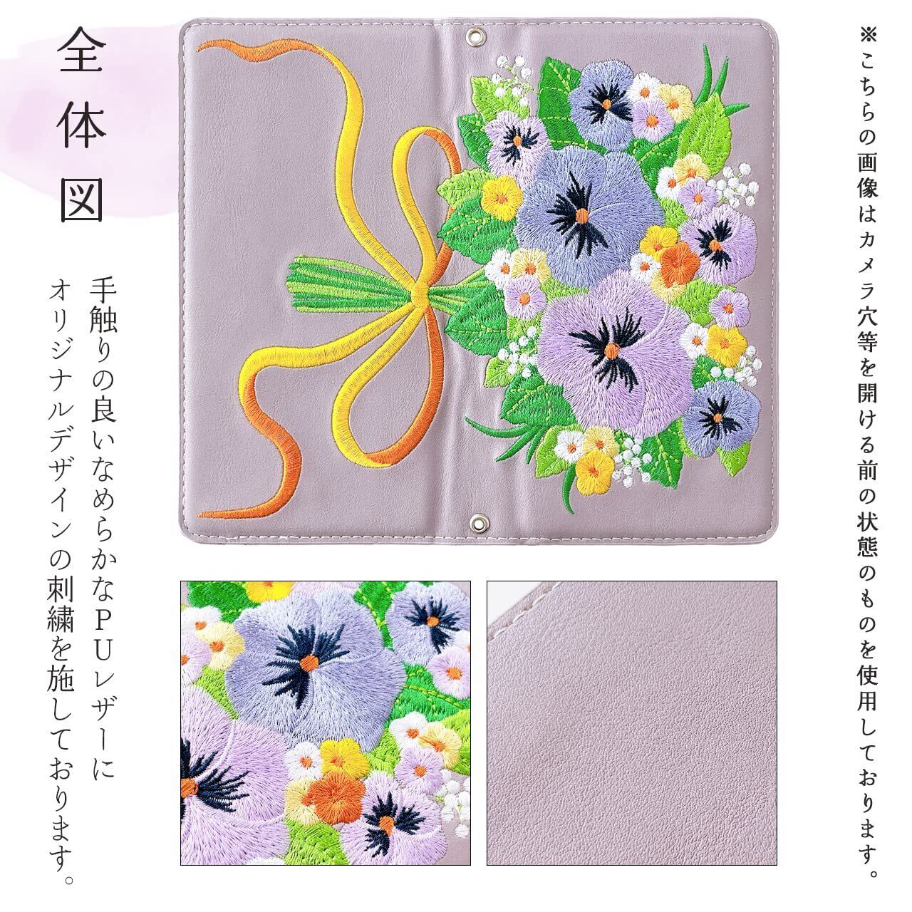 AQUOS wish 3 SH-53D A302SH SH-M25 ケース カバー 手帳型 SH53D SH-53Dケース A302SHケース SH53Dケース SH-M25ケース 手帳ケース 手帳型ケース スマホケース パンジー刺繡 パープル