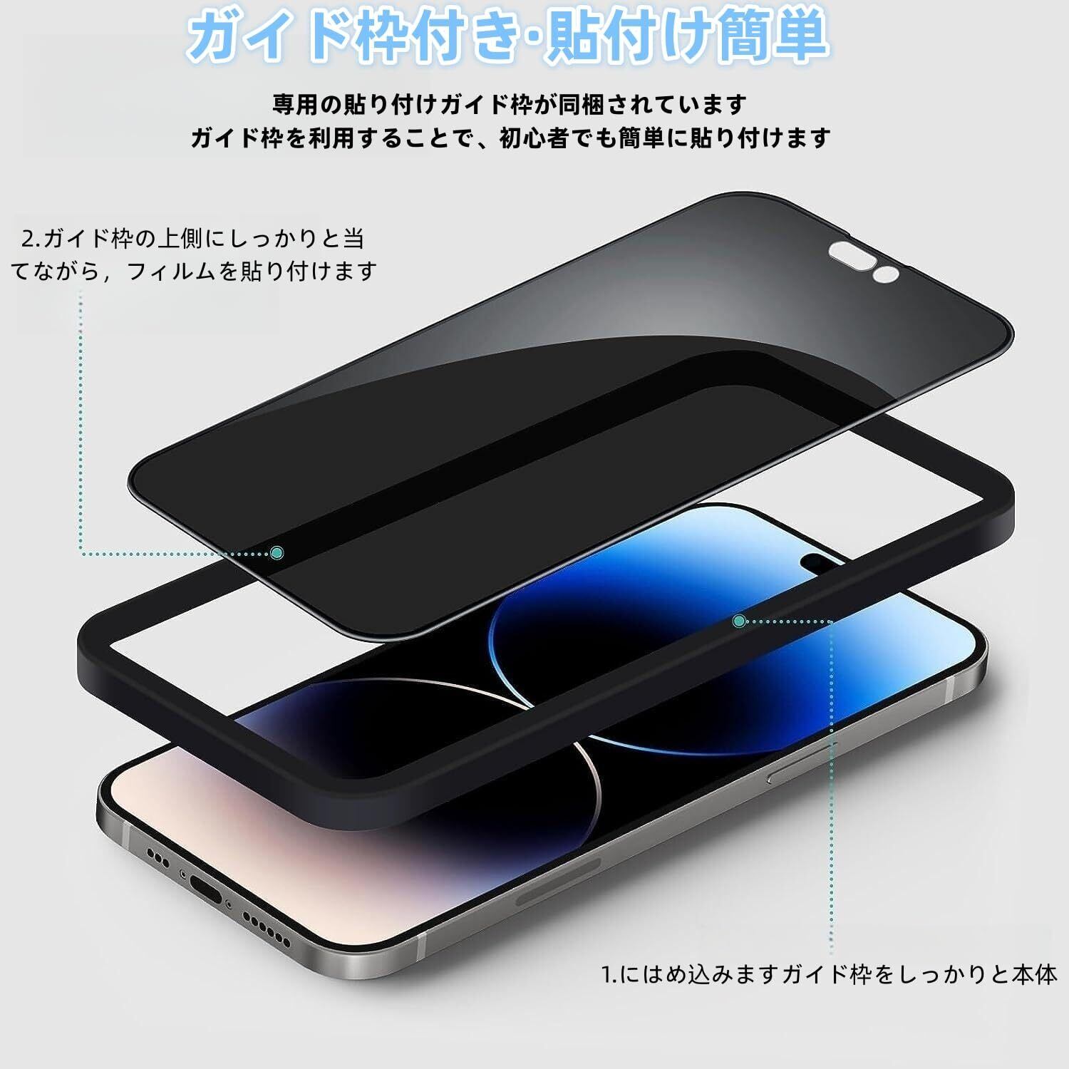 【覗き見防止 アンチグレア】iPhone 15 Pro Max 用ガラスフィルム【2枚/ガイド枠付き】 硬度9H 日本製強化ガラス 覗き見防止 液晶保護フィルム サラサラ感 全面保護 反射防止 飛散防止 キズ防止 衝撃吸収 撥油性 疎水性 アイフォン15Pro Max ゲームフィルム