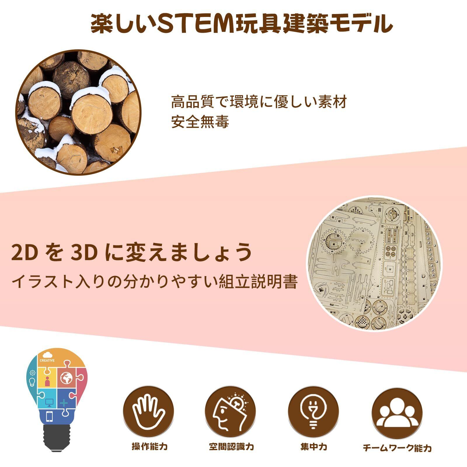 【家族と友達との時間を楽しむための素晴らしいホームアクティビティ】: DIYの木製機械構造モデルを組み立てて、家族や友人の楽しみを作りましょう。 木製工芸キットは、論理的思考スキル、戦略的計画、視覚的および空間的認識を開発します。 一歩一歩で、平らな紙のパーツを段階的に組み立てて、素晴らしい立体モデルを作ります。 休暇などに、ゆっくりと時間をかけて作りたい方へおすすめです。このツール不要のパズルを組み立てて、週末を充実した時間(約4-5時間)で満たしましょう。