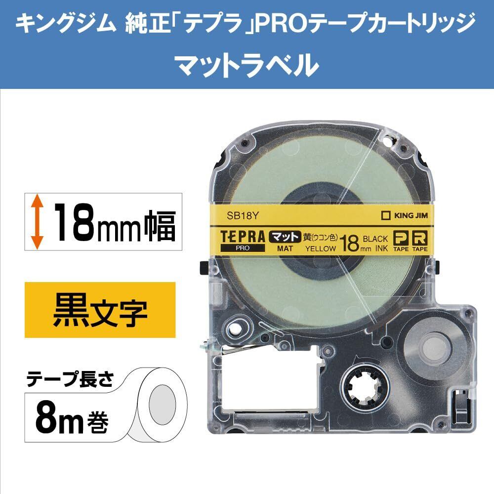 キングジム 【純正】 テプラPROテープカートリッジ マットラベル 18mm ウコン色/黒文字 8m SB18Y