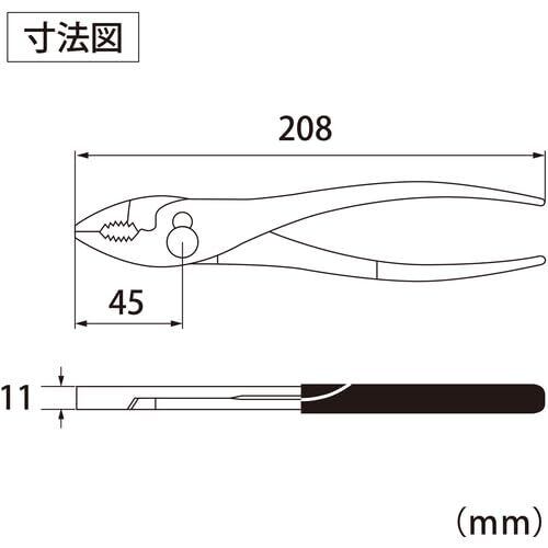●小ネジ外しの機能を追加●両面フラット軸ナット採用。●くわえ部は、非対称の特殊形状。●3点当り(トリグリップ)でガッチリグリップ。●ロブテックスオリジナルのプライヤがネジアンギラスシリーズに登場【用途】●先端くわえ部適応ネジサイズ: ネジ頭φ12mm以下(ナベ: M2~M6、トラス: M3~M5)●さびついたネジ、頭のつぶれたネジ、特殊なネジの締め付けや、取り外しに。●パイプ等の配管作業。●ボルトナットの締付けから取り外し。●鉄線の切断、ねじり、曲げ、引っ張りに。●鉄板等の曲げに。【注意・使用条件】●電気が流れているものには使用しないで下さい。●グリップに絶縁機能はありません。●切断能力を超えた線材は切断しないで下さい。●切断片の飛ぶ方向を確認して切断して下さい。●幅調整は確実に切り換っていることを確認してから使用してください。●不安定なくわえかたをしないでください。●すべって手などを挟むことがあります。●ハンマー代わりに使用しないでください。