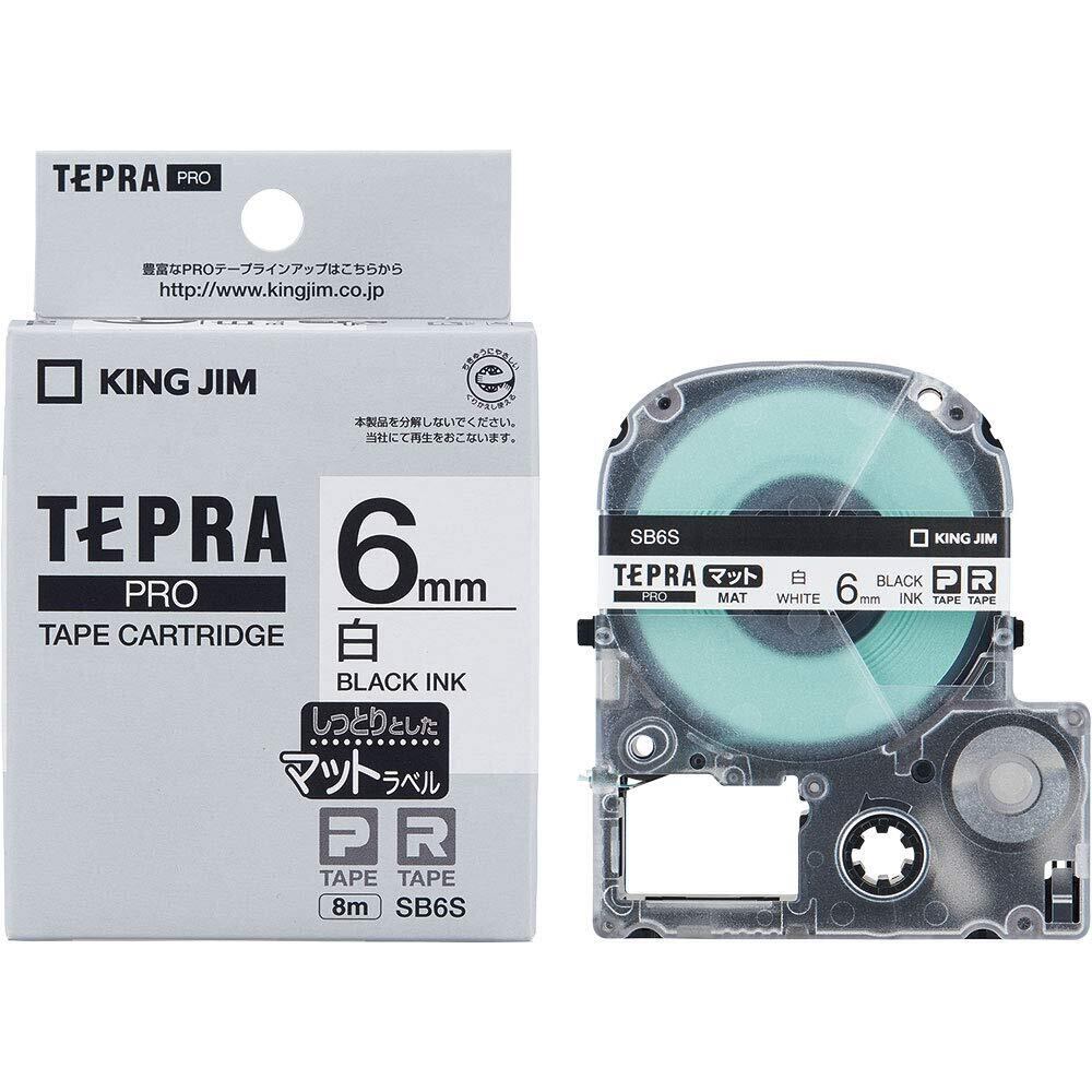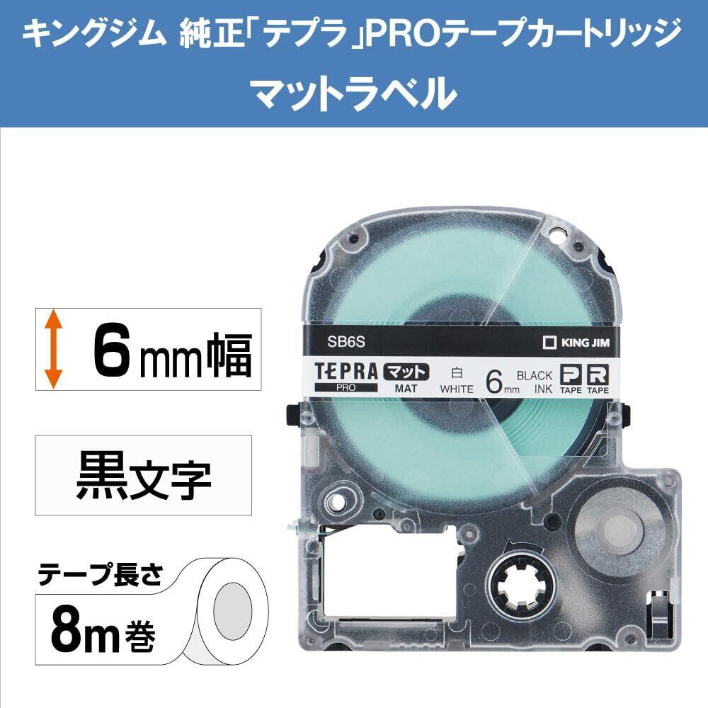 キングジム 【純正】 テプラPROテープカートリッジ マットラベル 6mm 白/黒文字 8m SB6S