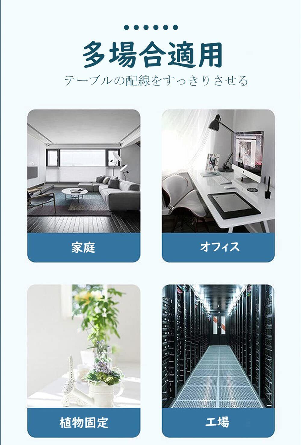 【調節可能なデザイン】ケーブルの太さにご自由に調節できます。手軽に結束、固定できます。便利性がいいです。 【強力な接着剤】粘着テープ式で、壁、机、テーブル、車内など場所でも手軽に取り付けられます。