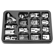 さまざまな押え金:すべての縫製ニーズを満たすことができる16個の異なる押え金。