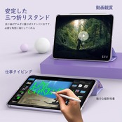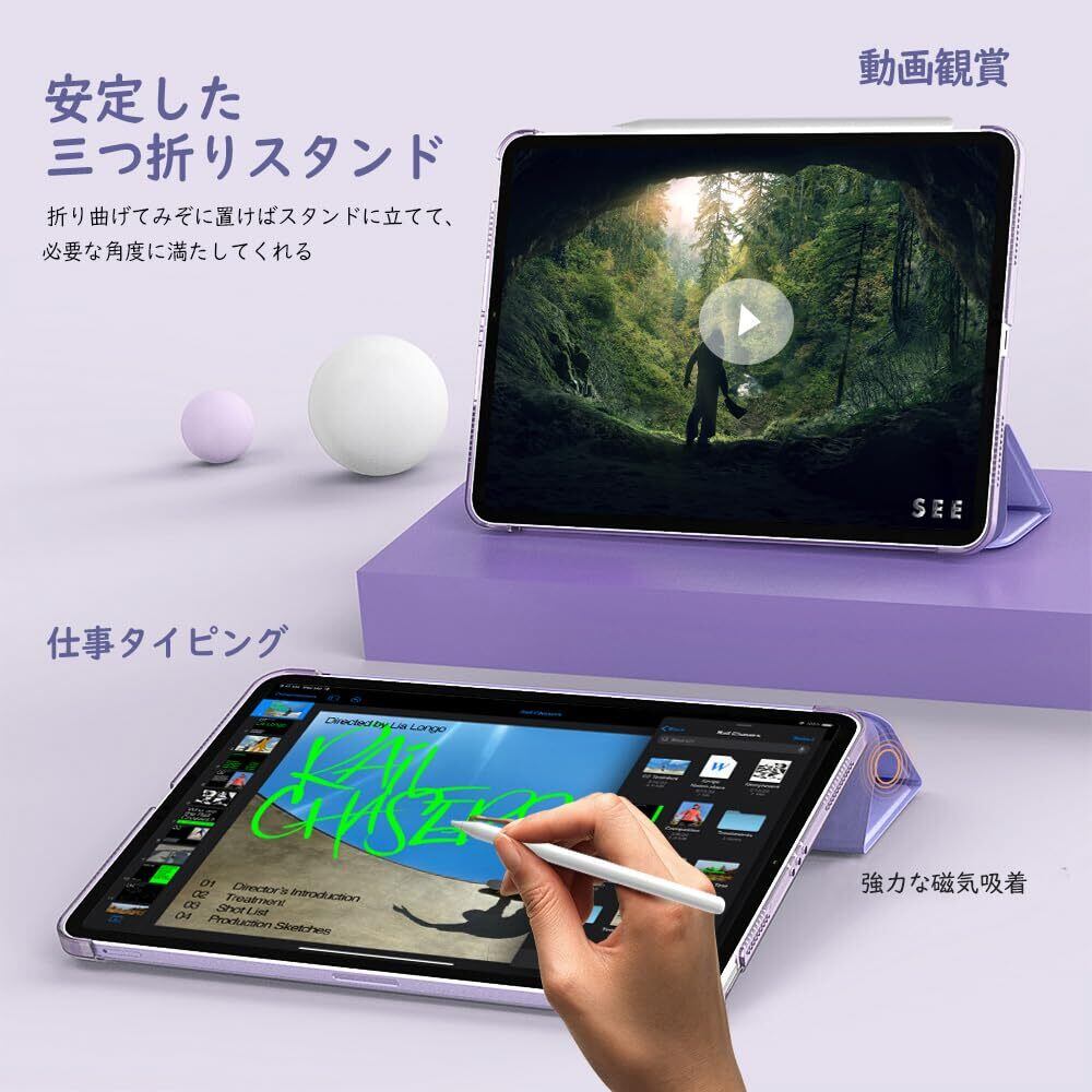 TiMOVO iPad Air 11インチ ケース M3/M2 第7/6世代 (2025/2024) iPad air 第5/4世代 ケース 10.9インチ iPadAir7/6/5/4 カバー 11インチ/10.9インチ PencilPro/第2世代ワイヤレス充電対応 PUレーザー 三つ折り オートスリープ機能 落下防止 手帳型 半透明 ラベンダー