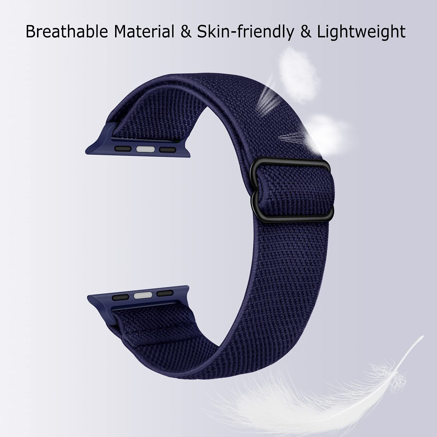 弾性スポーツソロループ コンパチブル Apple Watch バンド 42mm (シリーズ10) 41mm 40mm 38mm、ナイロン編組スポーツループ、交換用ベルトApple Watch SE2 SE シリーズ 10/9/8/7/6/5/4/3/2/1用 (濃紺)