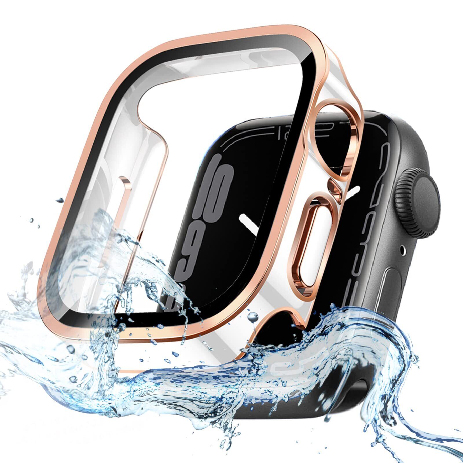 TEMEDO 対応 Apple Watch ケース 40mm アップルウォッチ カバー 3D直角エッジデザイン メッキ加工 防水ケース Apple Watch カバー 全面保護 二重構造 アップルウォッチ ケース ガラスフィルム Apple Watch se 第二世代/se/6/5/4 アップルウォッチse 第二世代/se/6/5/4 対応(40mm,防水光沢のホワイト+ローズゴールド)