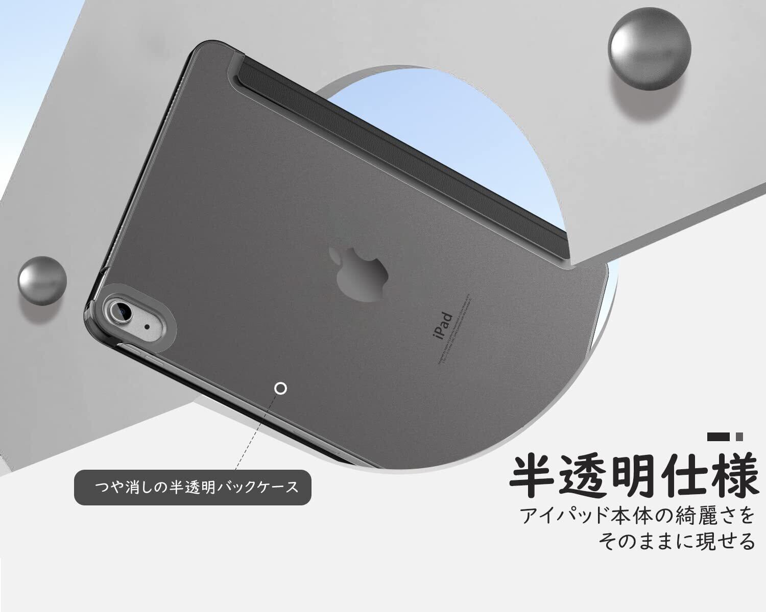 MoKo iPad Air 11インチ ケース(2025/2024)、iPad Air5/4 10.9インチ ケース iPad Air(M3/M2) 11インチ iPad Air第5/4世代 10.9 カバー 半透明 オートスリープ ApplePencilPro/第2世代ペアリング&充電対応 三折りスタンド PUレザー 裏地マイクロファイバー スマートケース ブラック