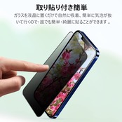 【覗き見防止技術】当社のiPhone13ProMax保護フィルムは、高透過率で真正面から見るとはっきり見えますが、内部に組み込まれた微細なルーバーと特別なブラインド加工により、画面を横から覗かれることを防げます。本製品は180度ブラインド仕様のプライバシー保護フィルムです,角度を変えるだけでブラインドルーバーにより画面が段々黒くなり、周りからの視線を防ぐことができ、隣の人に覗かれることなく安心してLINEやメールの読み書き、パスコードの入力等ができます。