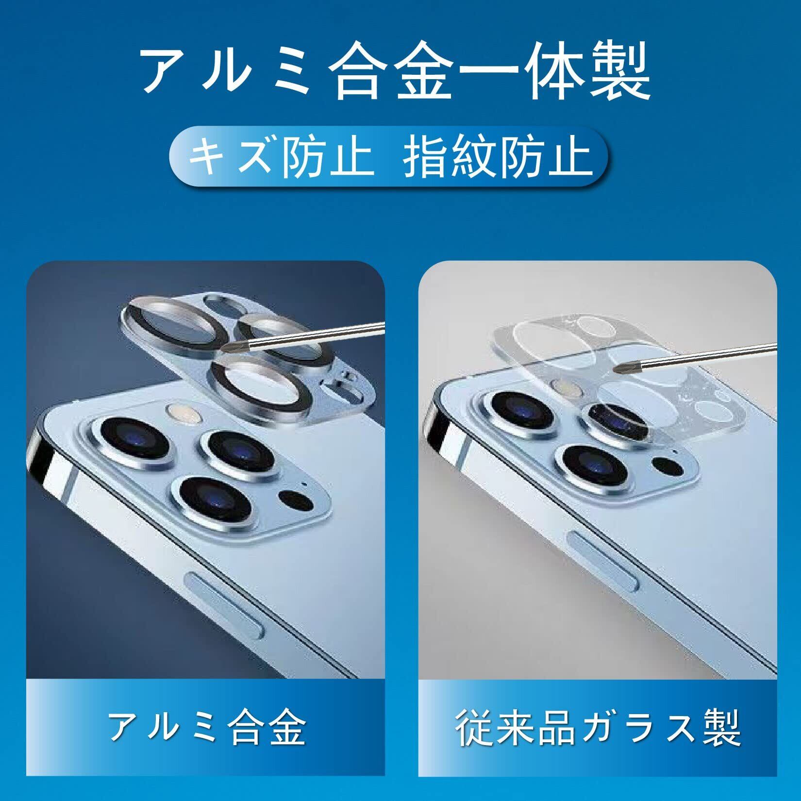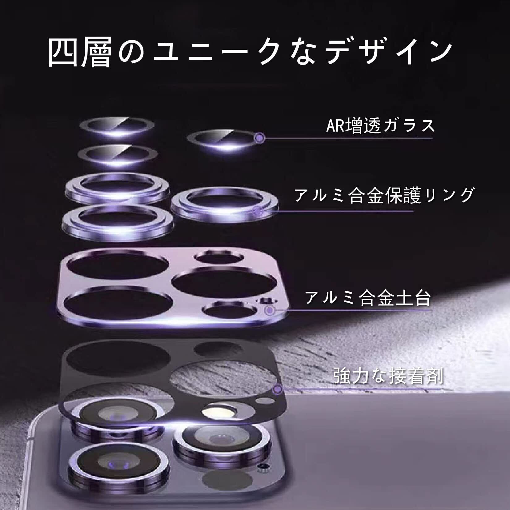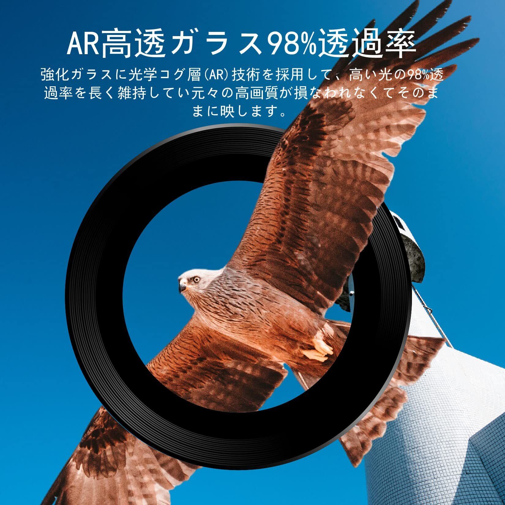 【 キズ防止・保護性高い】カメラフィルムはスマホのレンズ部分の全体覆われている,三つレンズの真ん中にAR超高透過率ガラスを採用され、レンズフィルムの周りにアルミニウム材質で擦り傷や衝撃からカメラレンズをしっかりと守られます。アルミ合金製なので 耐久性は普通のガラス製のカメラフィルムより5倍UP!