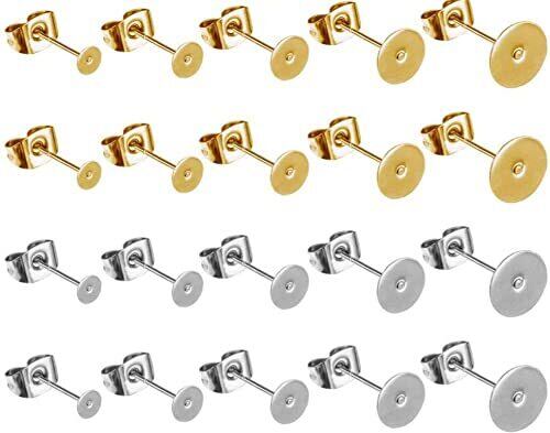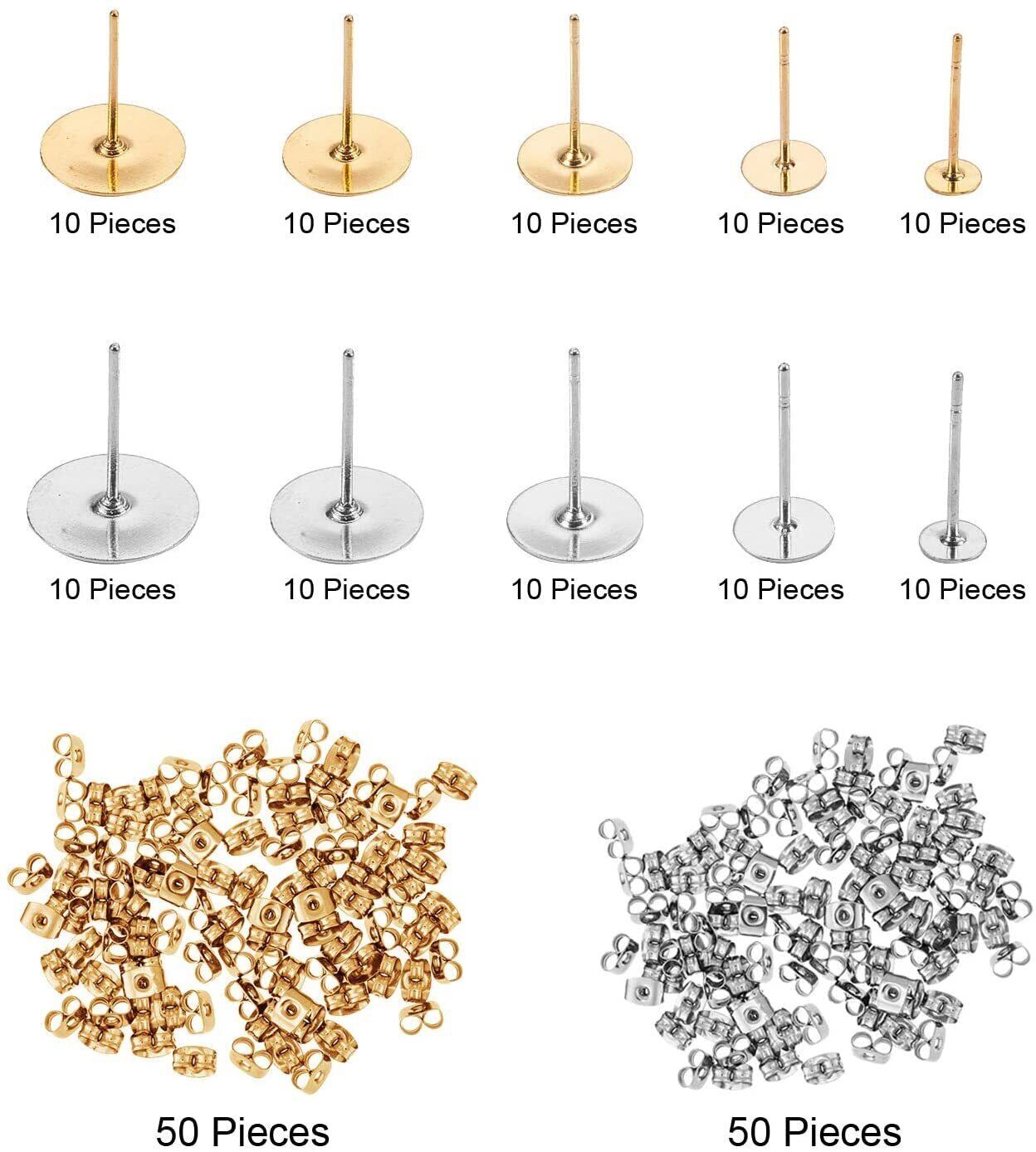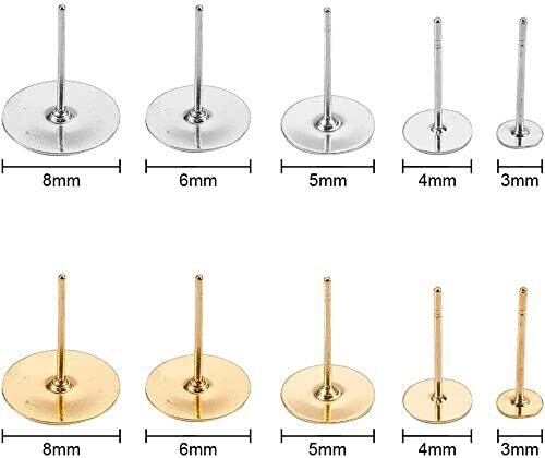 Sopplea 丸皿 ピアス パーツ シルバー ポスト 台座 付き 平皿 土台 バタフライキャッチ セット 50ペア(3mm、4mm、5mm、6mm、8mm) 200個 (ゴールドとシルバー)