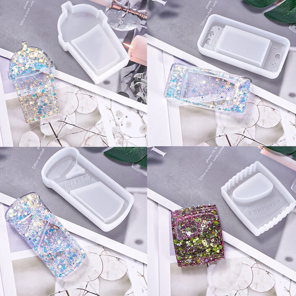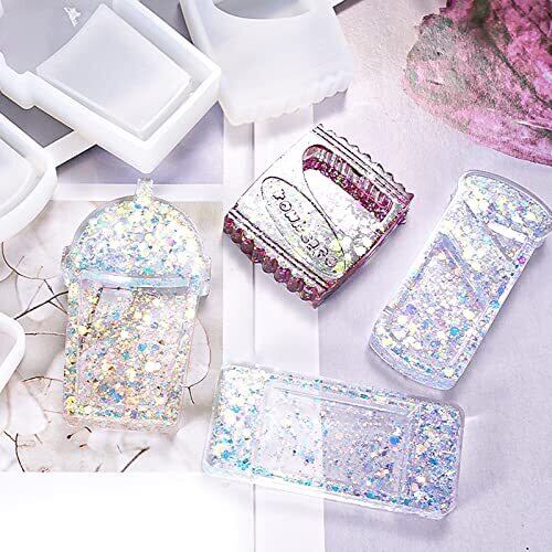 サムコス シリコンモールド 流砂型 4個セット 4デザイン シャカシャカ中身 レジン型 エポキシ樹脂 DIY 手作り ジュエリー作り キーホルダー ストラップ チャーム ペンダント