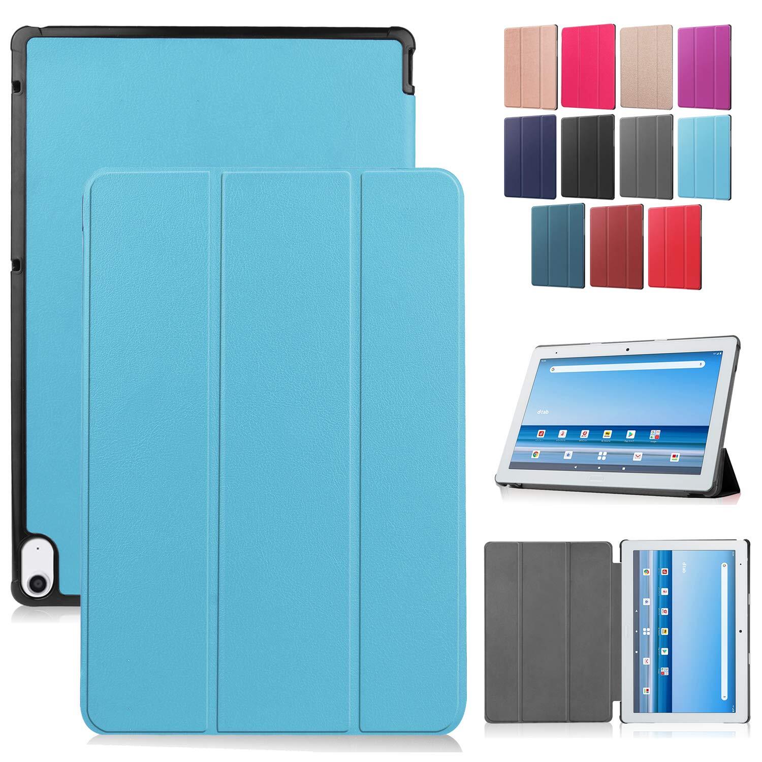 Duanr dtab d-41A docomo 10.1インチ 専用ケース カバー スタンド機能 三つ折り 折り畳み 衝撃吸収 耐衝撃 タブレットケース ブルー
