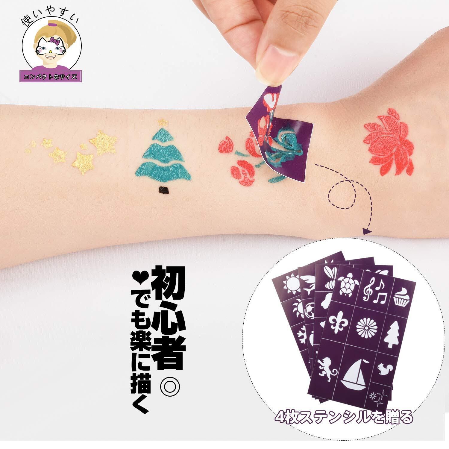セット内容:ボディペイント*15色 2本専用ブラシ ステンシル4枚 適応対象:6歳以上
