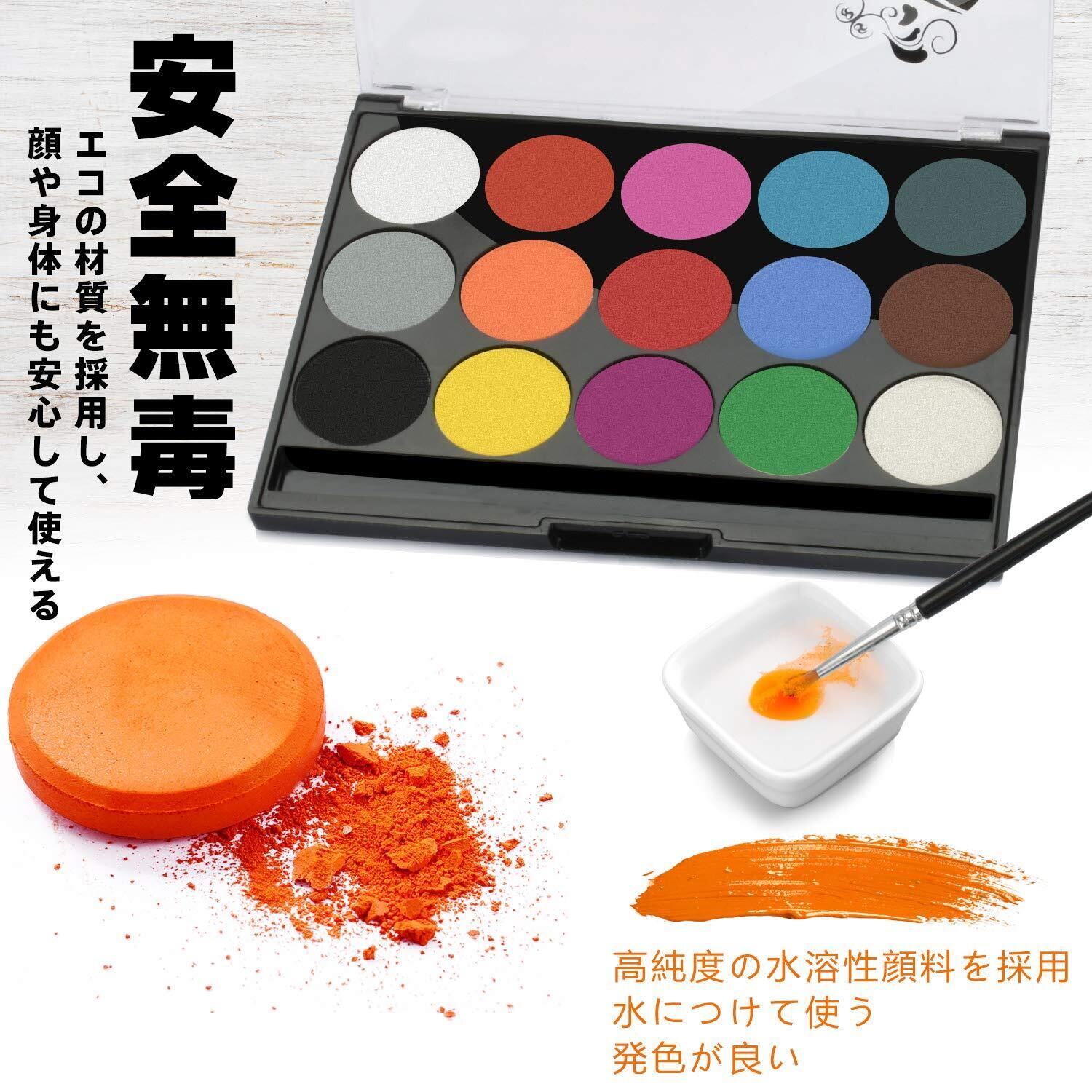 Chisafly フェイスペイント 15色セット ボディペイント 絵の具 マタニティペイント 顔ペイント 白塗り 安全 無毒 簡単水洗 速乾 エコ メイク ブラシ2本 ステンシル4枚 コスプレ 仮装 ハロウィン クリスマス | BASE SHOP