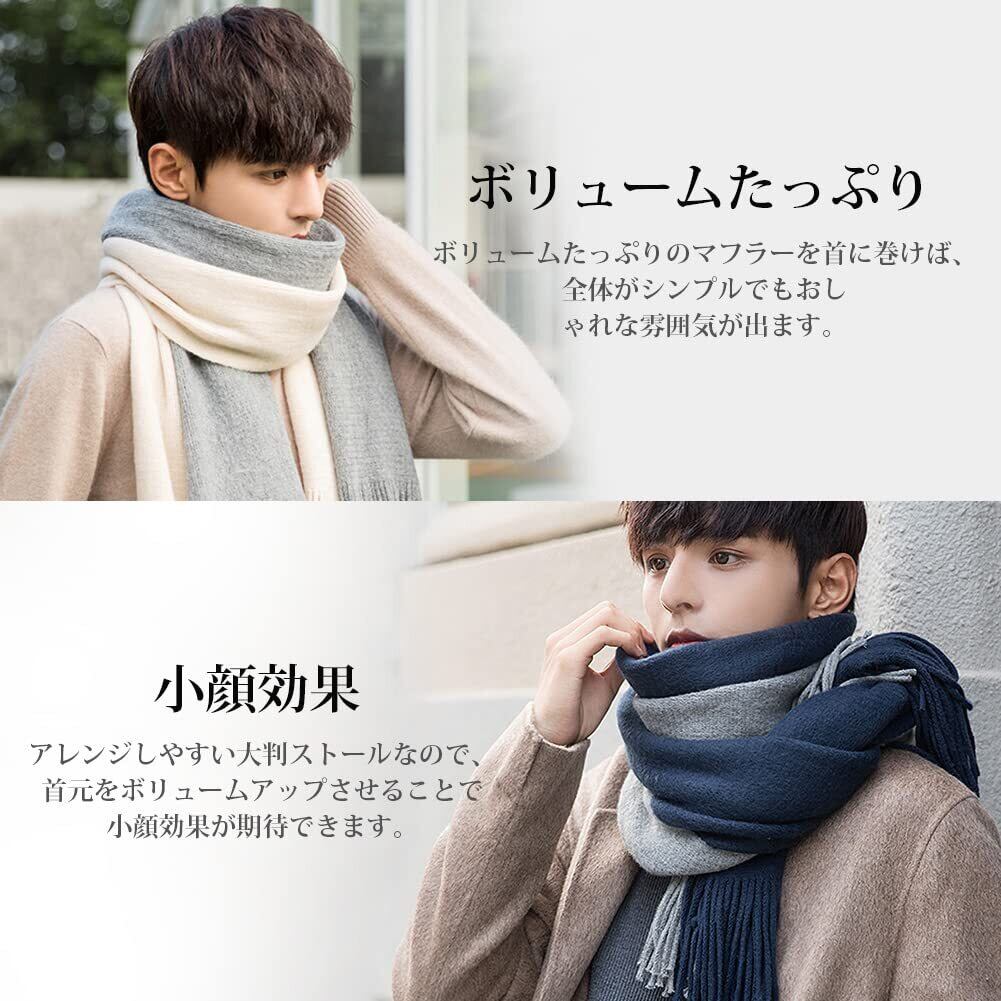 [Andeor] マフラー ストール メンズ 秋 冬 防寒 柔らかい肌触り・大判ストール・ショール・ストライプ・大きいサイズ シンプル カジュアル おしゃれ 暖かい 厚手 防風 プレゼント・ギフト・贈り物・誕生日・記念日・男女兼用
