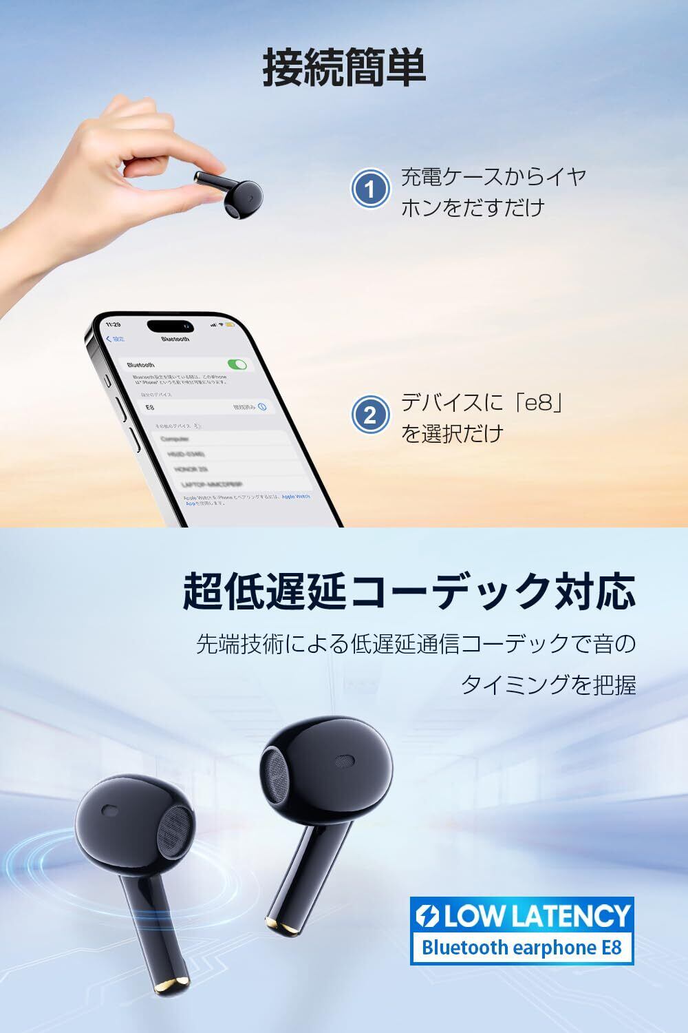 【Bluetooth5.3技術&自動ペアリング】インナーイヤー型完全ワイヤレスイヤホンはBluetooth5.3チップを採用し、従来より省エネの上に安定性を保護でき、「音遅延」も減少し、Bluetooth信号を左右同時に伝送することにより、接続時にはより安定伝送、より低電力消費、より高速化を実現しました。デバイスとの接続は初期登録後難しい操作が不要で、ケースから取り出すだけで自動的にペアリングされ、手間が省けて使い勝手が向上します。