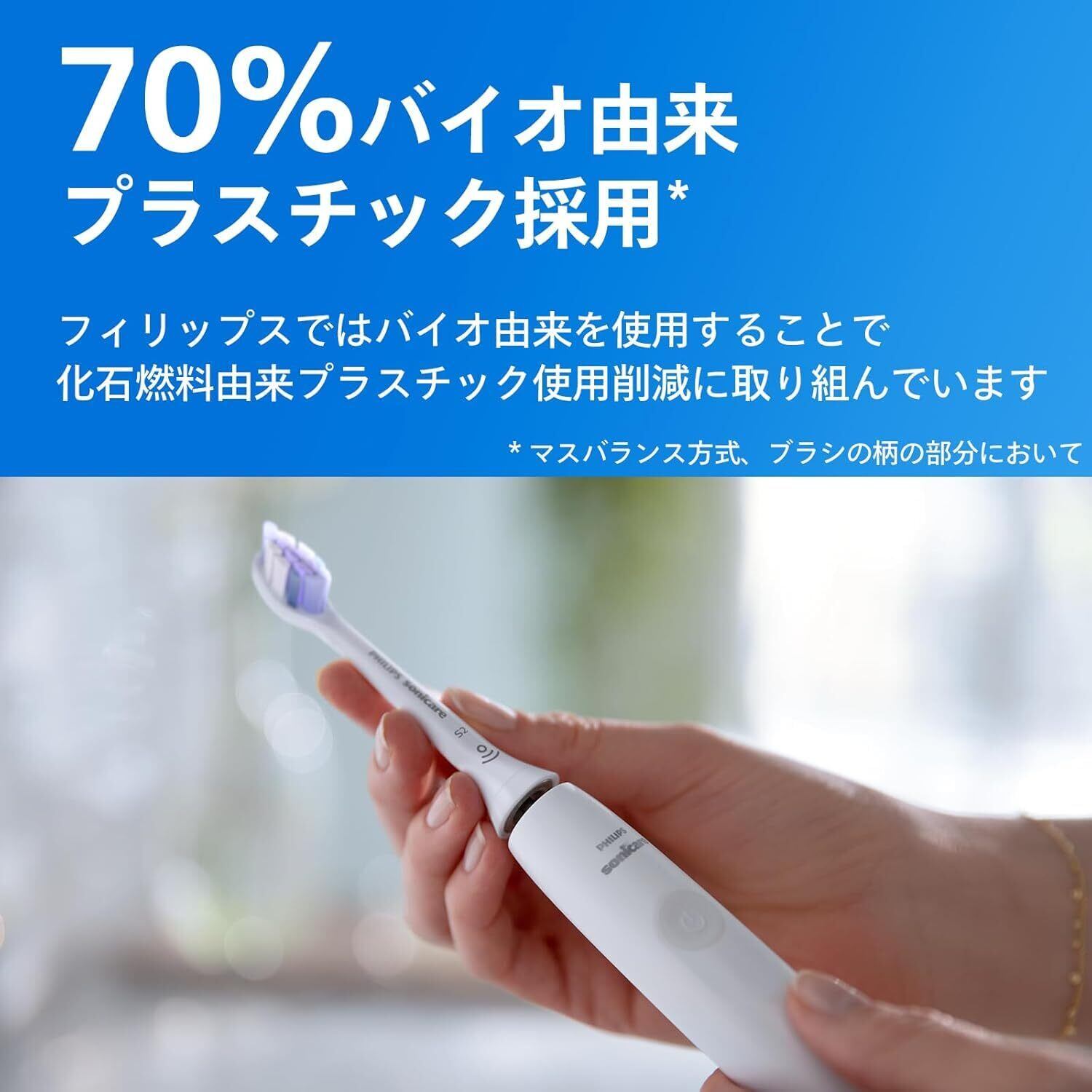 化石燃料由来プラスチック使用削減のためフィリップスでは70%バイオ由来のプラスチック採用。