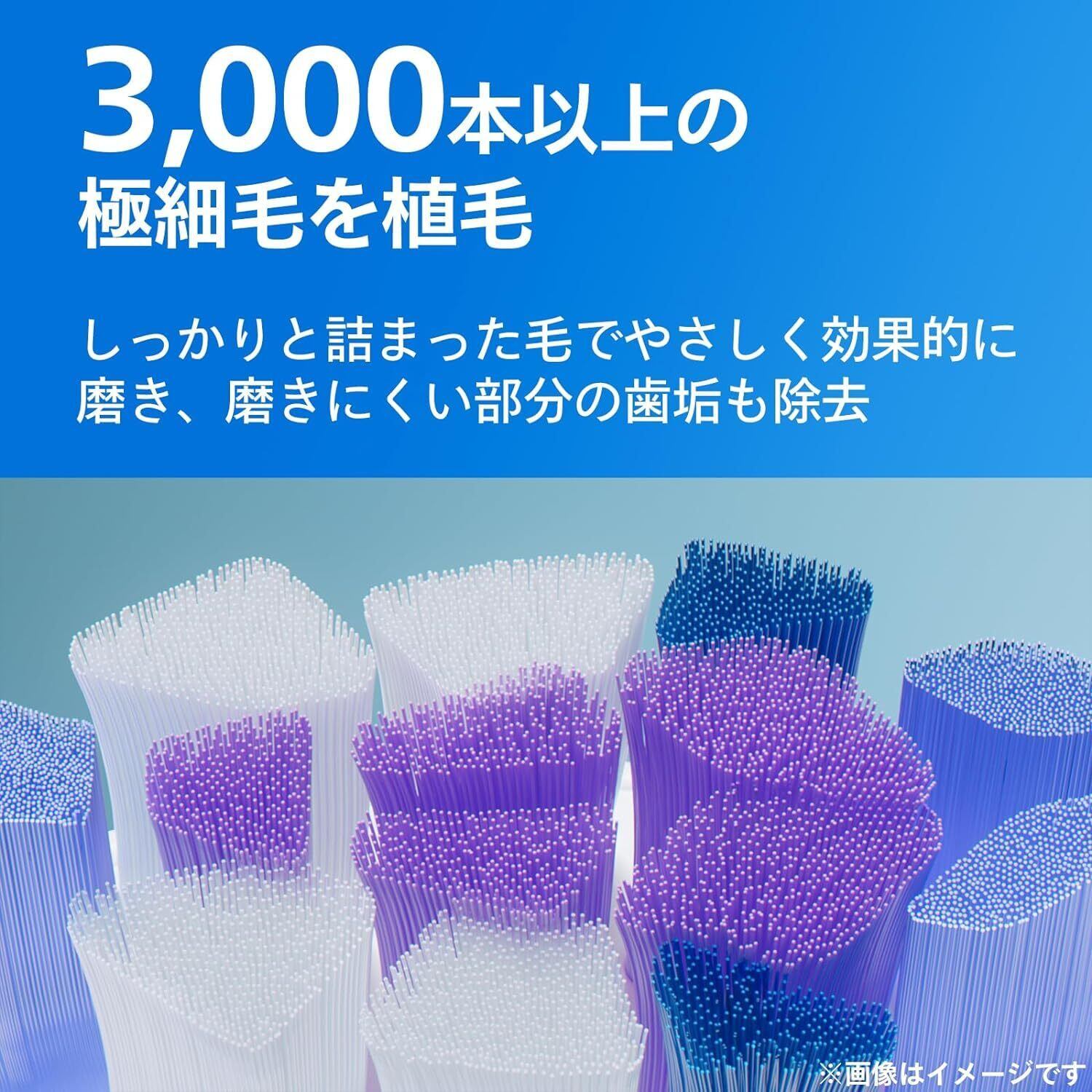 【ブラシ毛】3000本以上の極細毛を植毛し、磨きにくい部分の歯垢もしっかり磨く