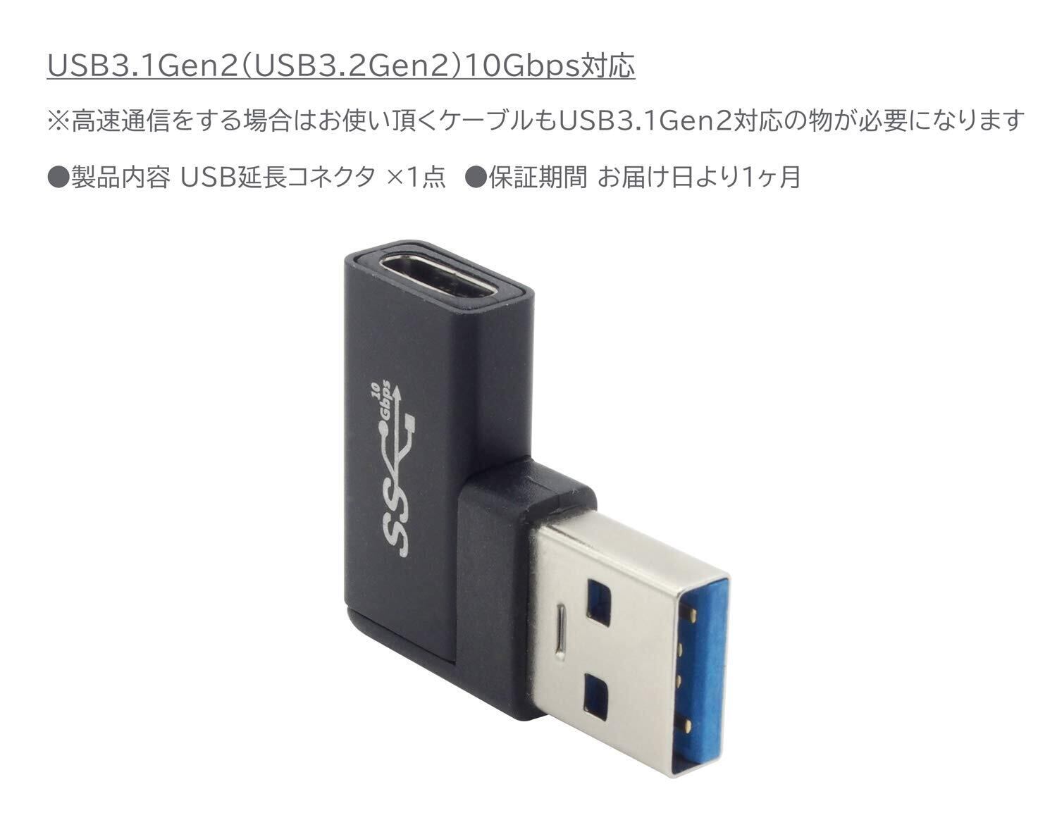 USB3.1Gen2(10Gbps) L字型D USB-TypeA (オス) - USB-TypeC (メス) 中継 延長アダプタ