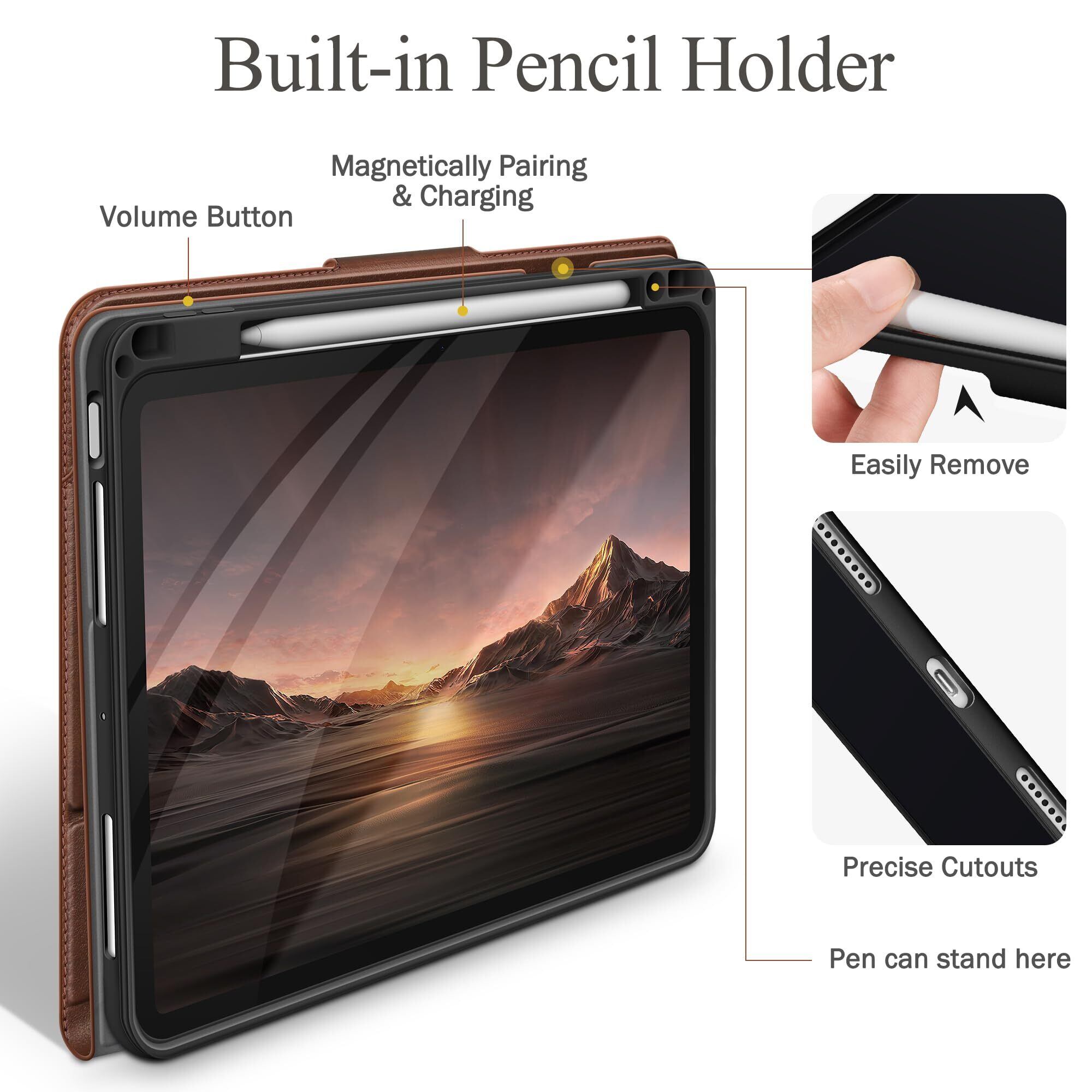 auaua iPad Air 11インチ ケース M3/M2 (2025/2024) iPad Air 第5/4世代 10.9インチ 2022/2020 専用 ペン収納 Pencil Pro/USB-C完全対応 ポケット付き 多角度スタンド マグネット開閉 オートスリープ対応 (ブラウン)
