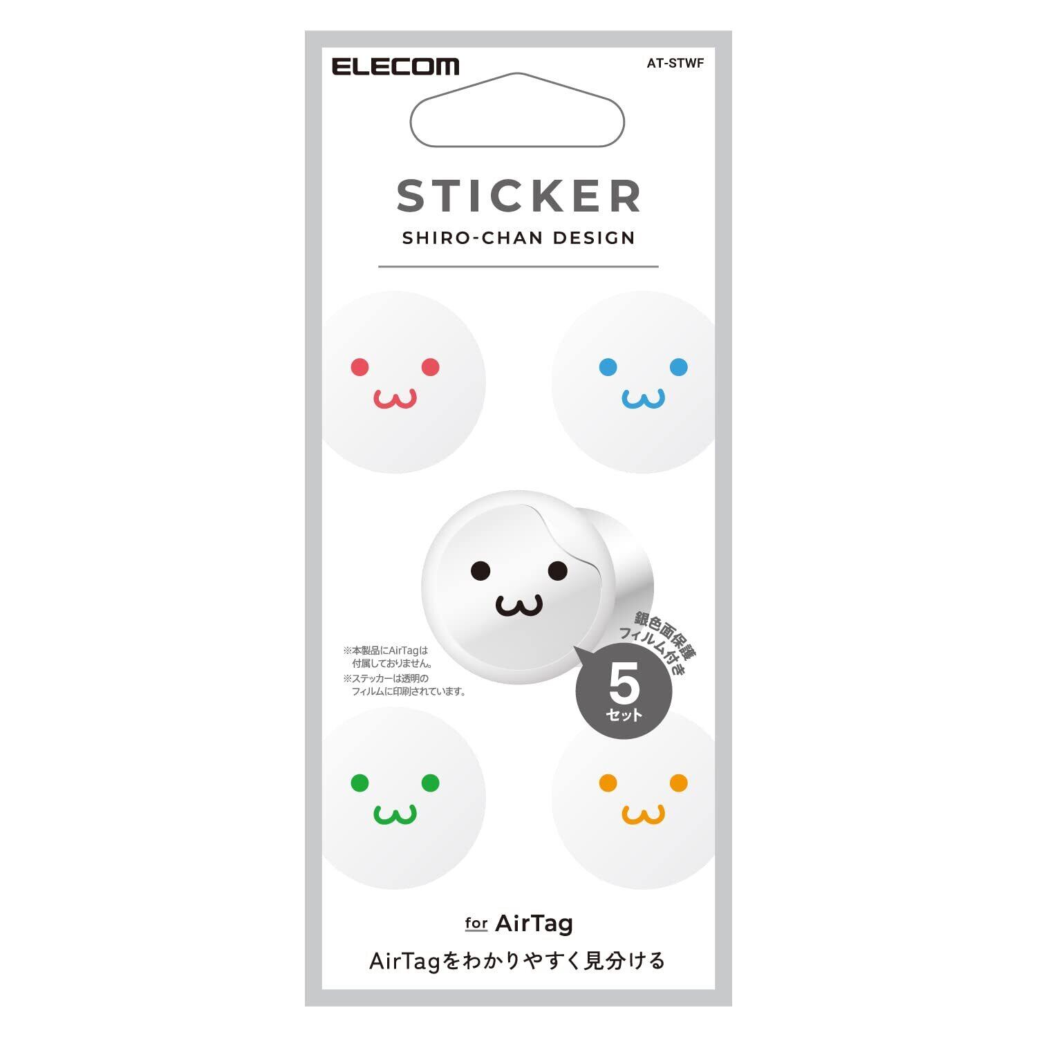 エレコム ステッカー シール AirTag用 白色面用ステッカー×5枚 / 銀色面用保護フィルム×5枚 【 わかりやすく見分ける 】 しろちゃん (・ω・) AT-STWF