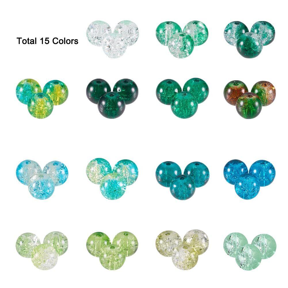 PandaHall 15色 8mm ガラスビーズ クラックビーズ 約460個 透明 緑のガラスビーズ アクセサリーパーツ