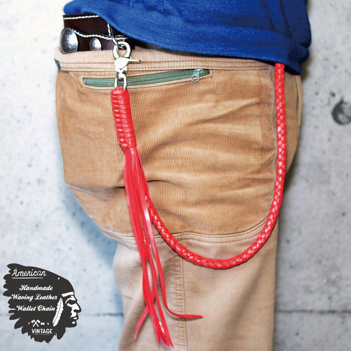 [ブルージェムズ] 【本革】 60cm レザー 手編み ハンドメイド ウォレットチェーン バイカー ;THWC-007
