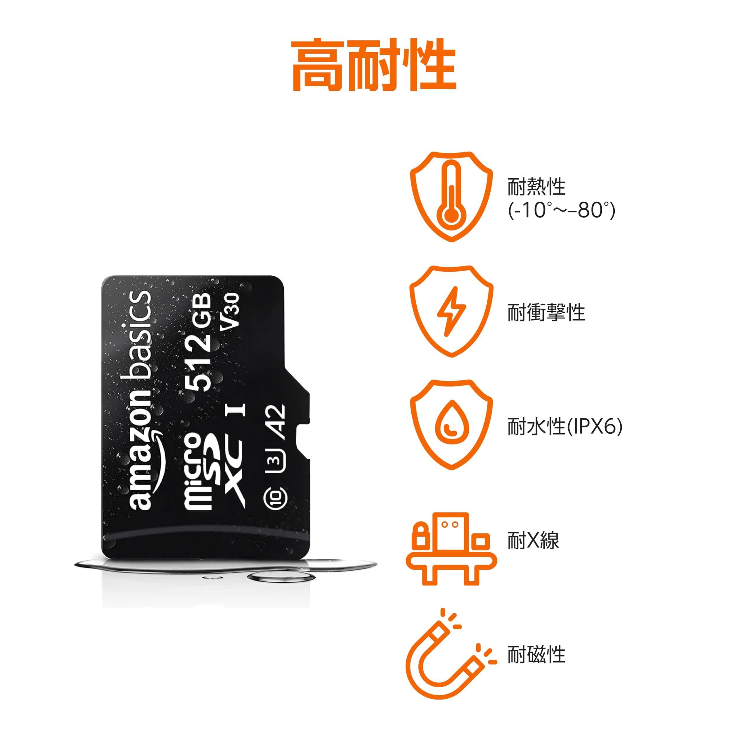 Amazonベーシック microSDXC メモリーカード 512GB フルサイズアダプター付き A2 U3 読み込み速度最大100MB/秒 ブラック