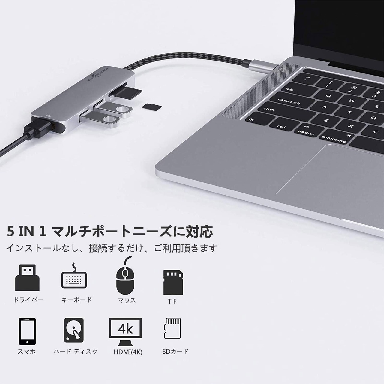 USB C ハブ アダプタ 5-in-1 4k hdmi GADEBAO マルチポート usb ハブ type-c【4K HDMI出力+USB3.0/2.0ポート+SD&TFカード スロット搭載】対応type c ハブ MacBook Pro/Air、ipad Pro、iPhone15pro、Dell、Huawei Matebook、Surface GoなどUSB C デバイス対応 タイプc ハブ