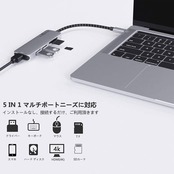 「usb type c ハブ 5 in 1」:HDMI(4K@30Hz)端子*1、SD&TFカードスロット(最大速度104MB/s)*1、USB 2.0端子*1、USB 3.0端子*1が搭載されています;使用も簡単、挿すだけですぐ使えます;シンプルなデザイン、どこへでも持ち運び、仕事やホビーの空間をスッキリ快適にしてくれます。ご注意:SD/ TFカードスロットは同時に写真や映像を高速に読み込むことができません。*本製品をご利用したいipadの客様はos16.2システムアップデートしてください。