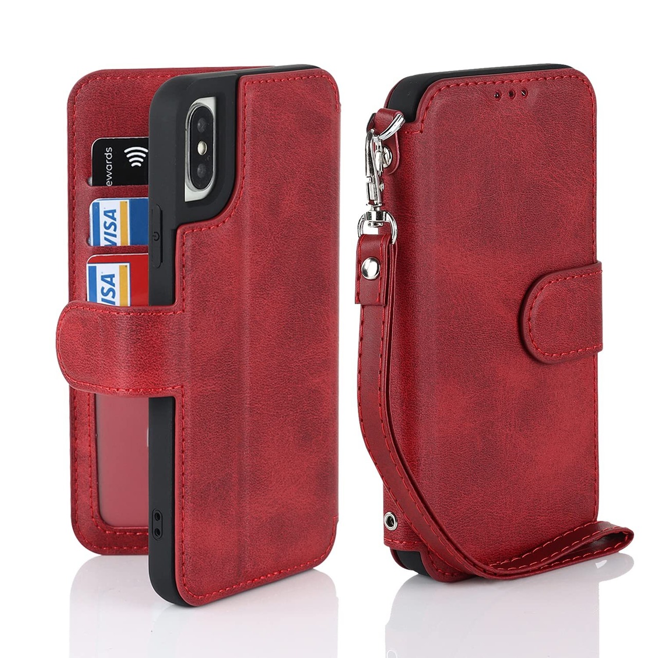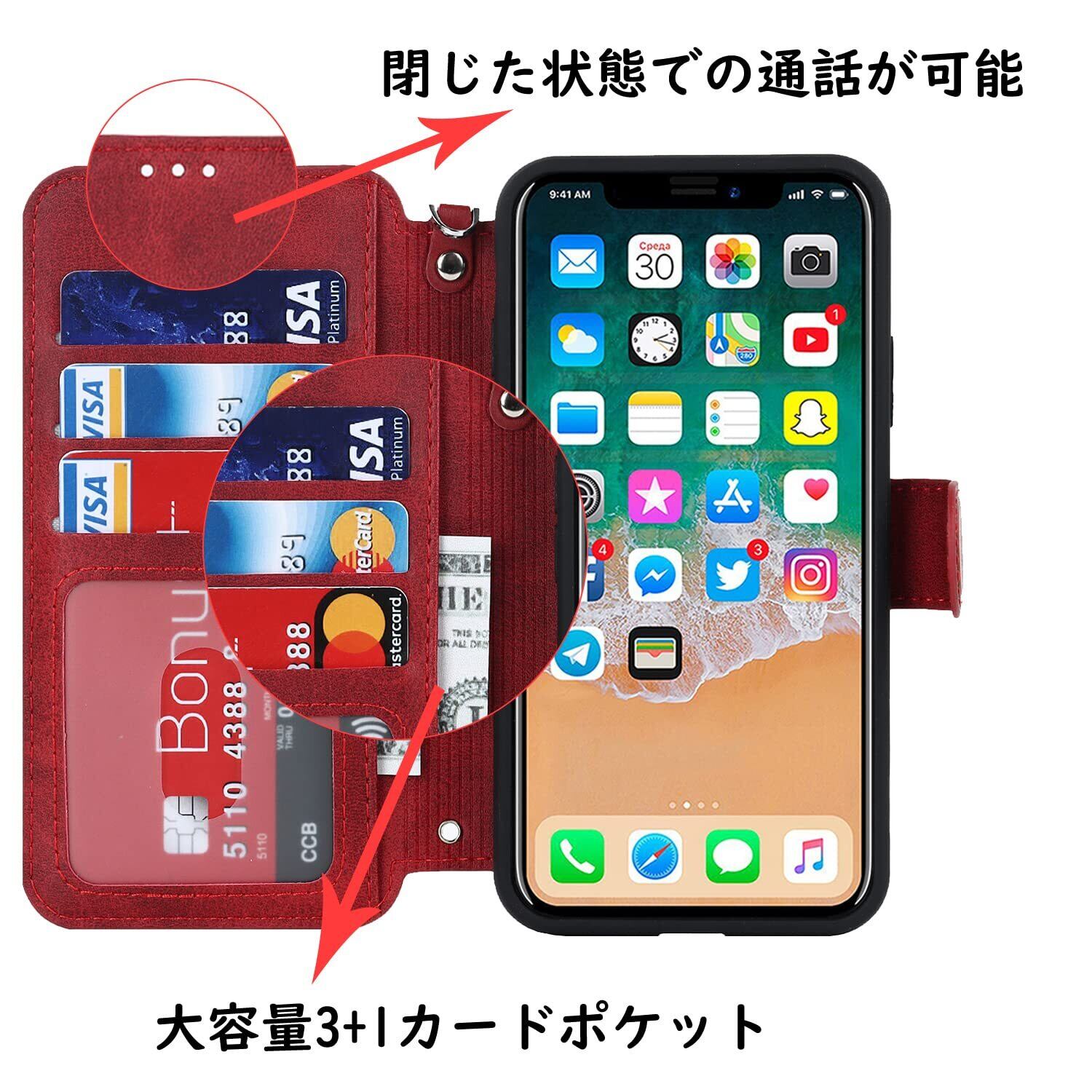 Havaya iPhone XS ケース iphone x ケース iphoneXスマホケース 米軍MIL規格 軽薄 手帳型 ストラップ 耐衝撃 レンズ保護(アイフォンX/あいふぉんXS/いphone10/アイホン10s 5.8インチ対応)-ワインレッド