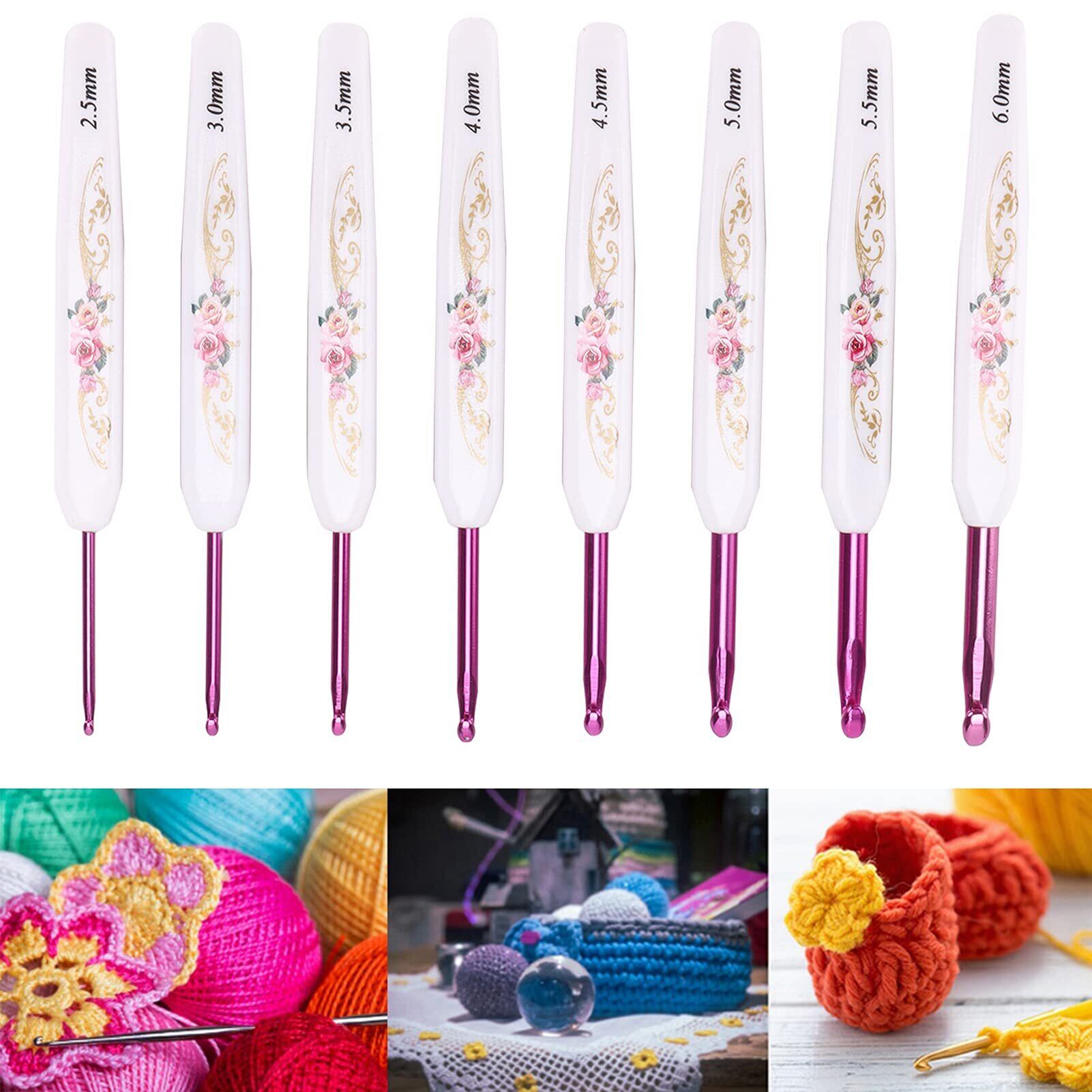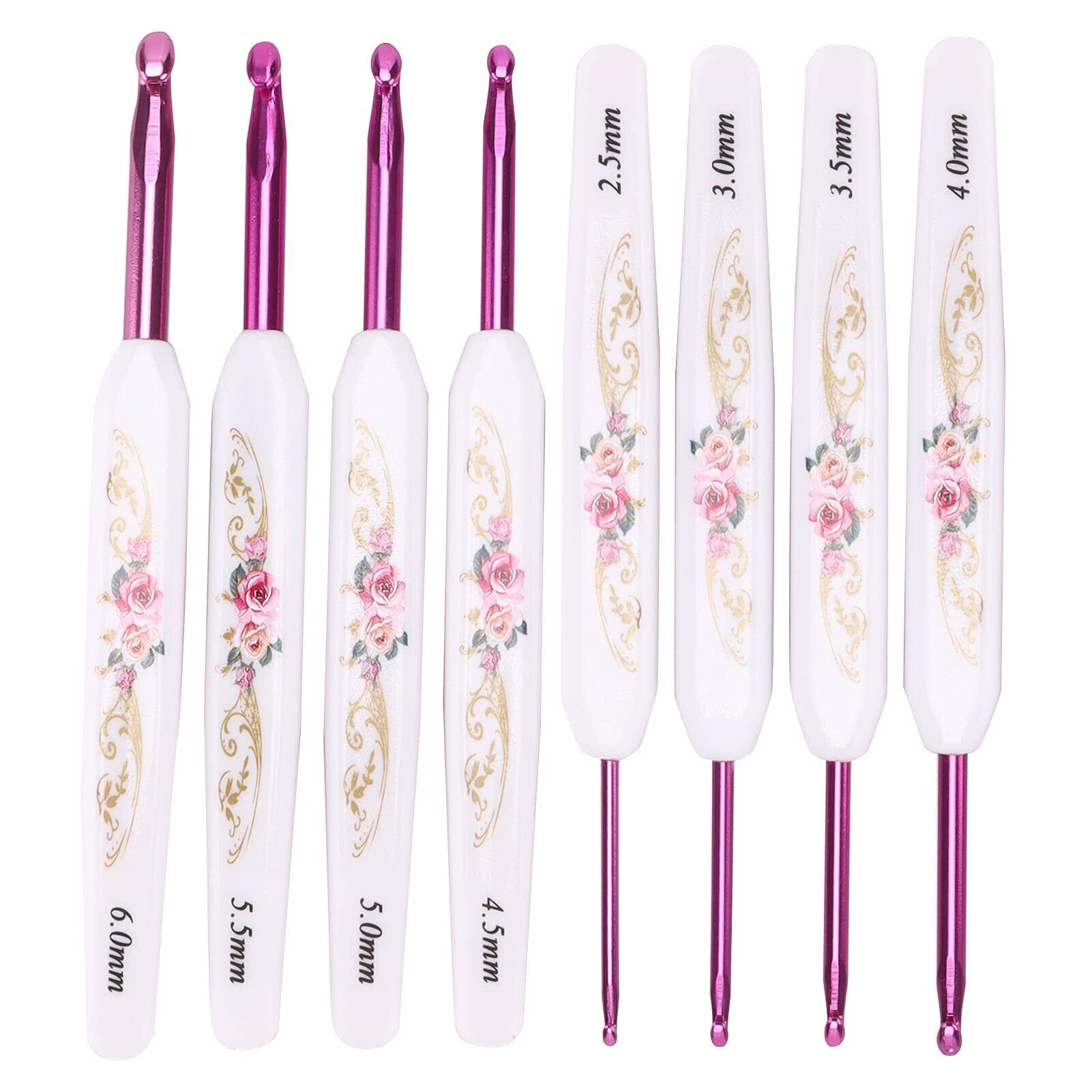 Sren かぎ針編みフックセット、かぎ針編みフックかぎ針編み針編み用編み物用DIY家庭用(紅花磁器パック8個入り)