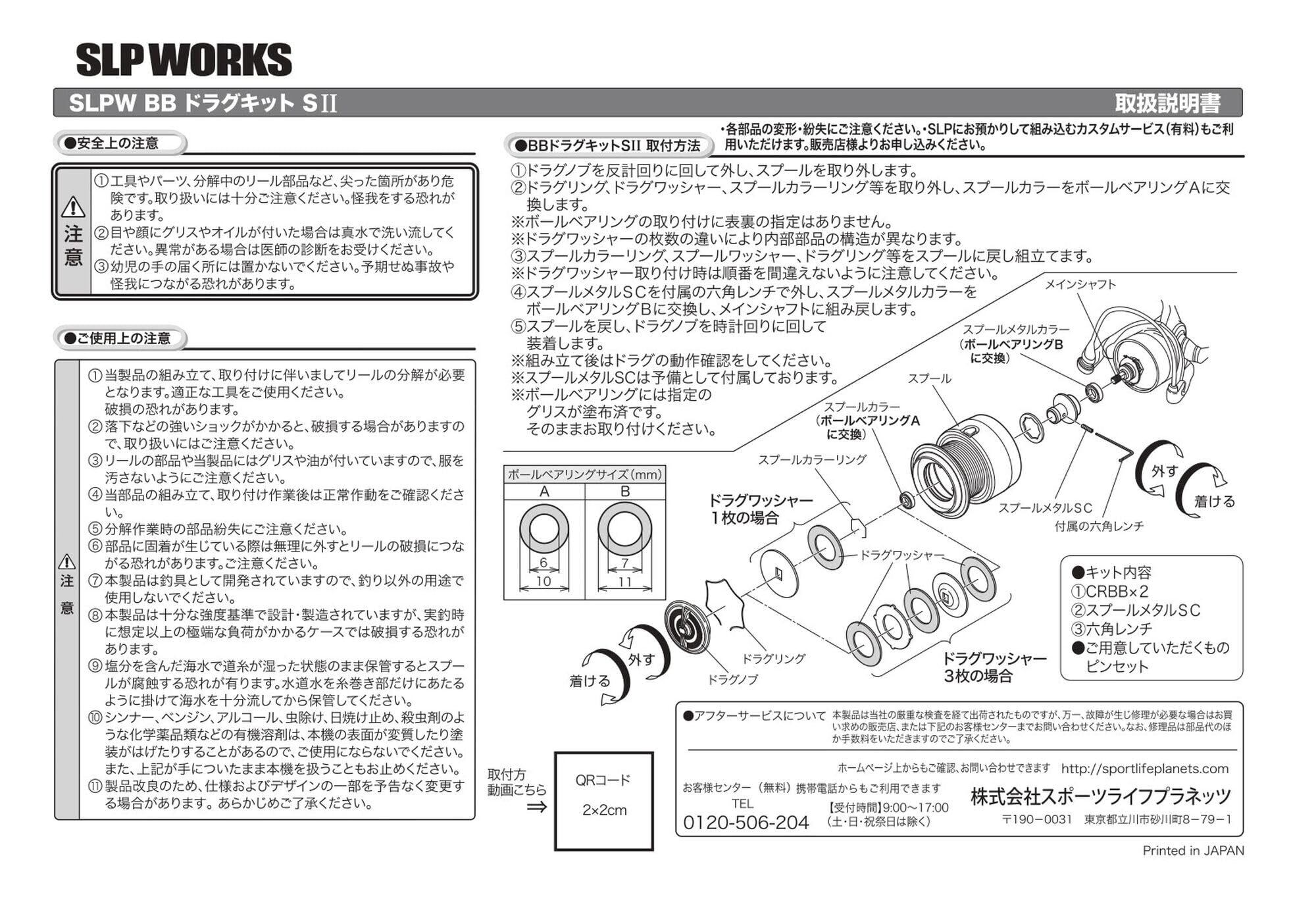 キット内容:CRBB (防錆加工ボールベアリング)2個入り, スプールメタルSC, 六角レンチ, 取扱説明書