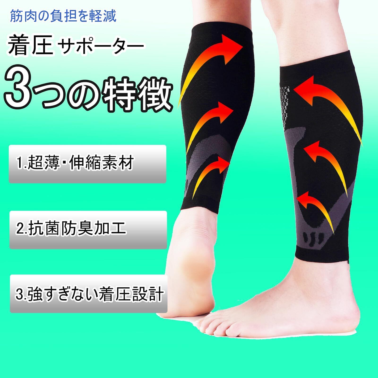 ふくらはぎ サポーター 着圧 通気性 立ち仕事 徒歩 ランニング 野球ウォーキング 左右 男女兼用 吸汗速乾 疲れ軽減 スポーツ時夏の冷え症対策浮腫み