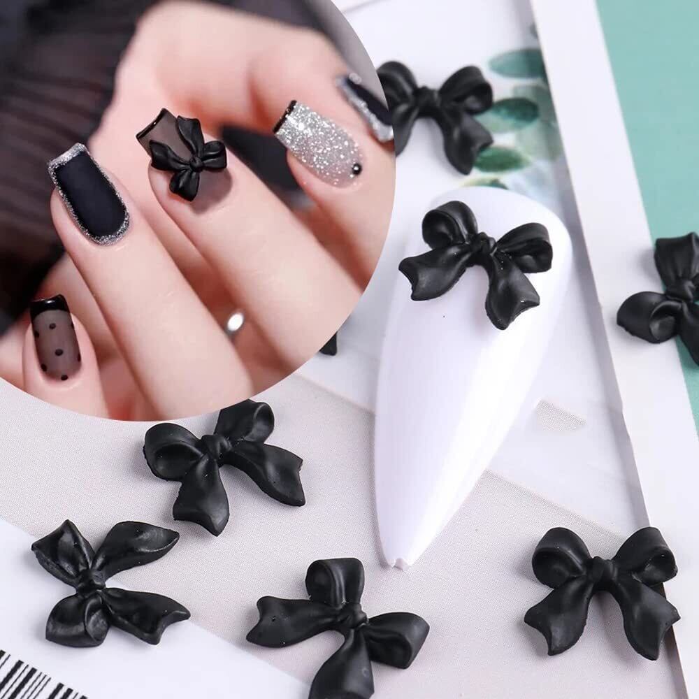 【可愛い形のデザイン】可愛いお洒落なリボンパーツ。定番の黒と白が3種類ずつ入っています。立体感があるリボンをネイルにのせるだけで存在感抜群のネイルが完成。