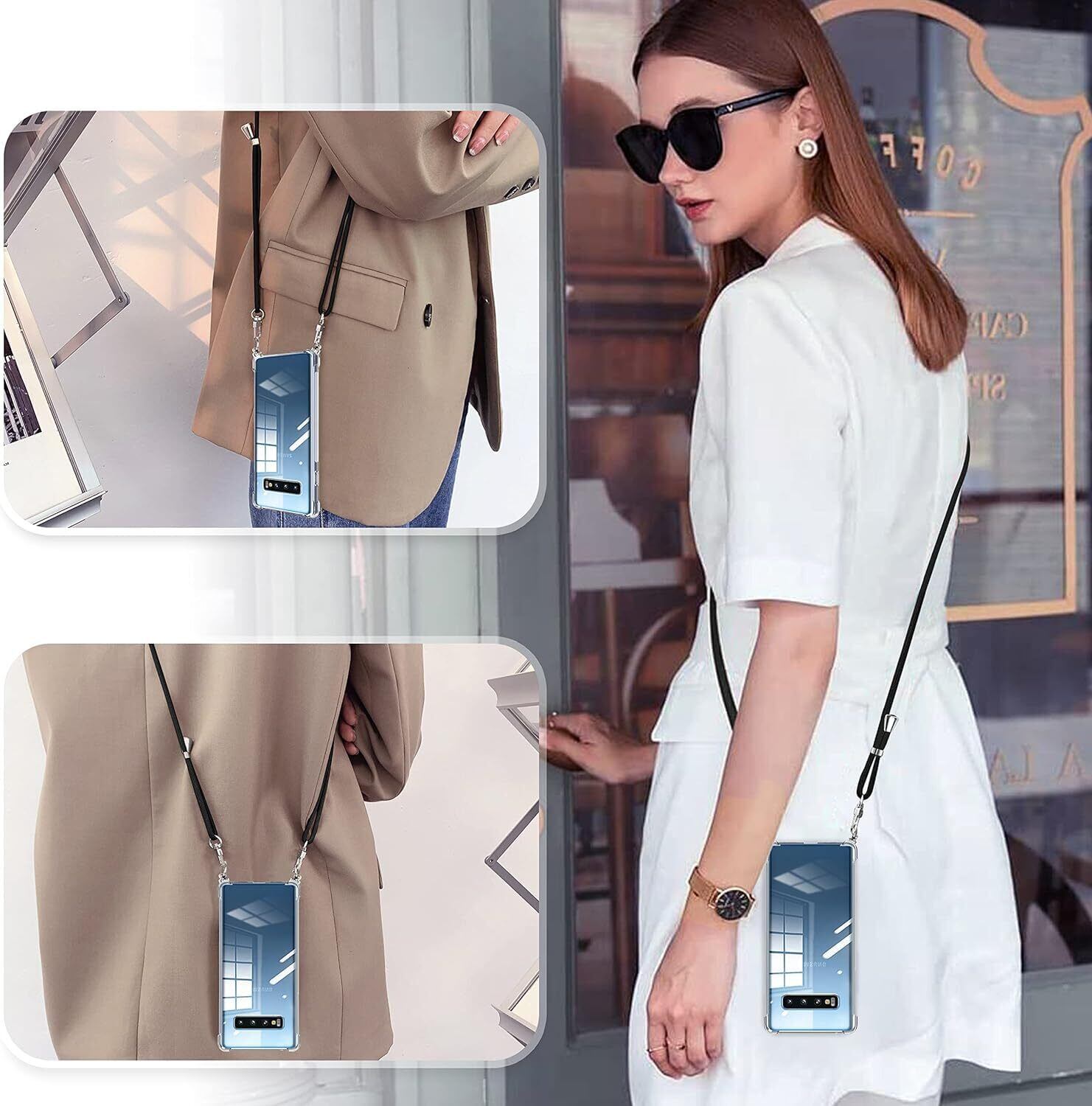 【実用・縄掛けケース】ショルダーストラップ付き、取り付けや長さ調整が非常に簡単。特にポケットのない服が多いので、外出時に肩にかけるととても便利です。ショルダーストラップは取り外し可能なので、それを使わなくても簡易的なスマホケースとして使用することができます。外出、登山、買い物、自撮り、電車内の時など日常生活からできるスマホ紛失・落下防止できるスマホネックストラップリングで両手を自由にし楽な日常ができます。