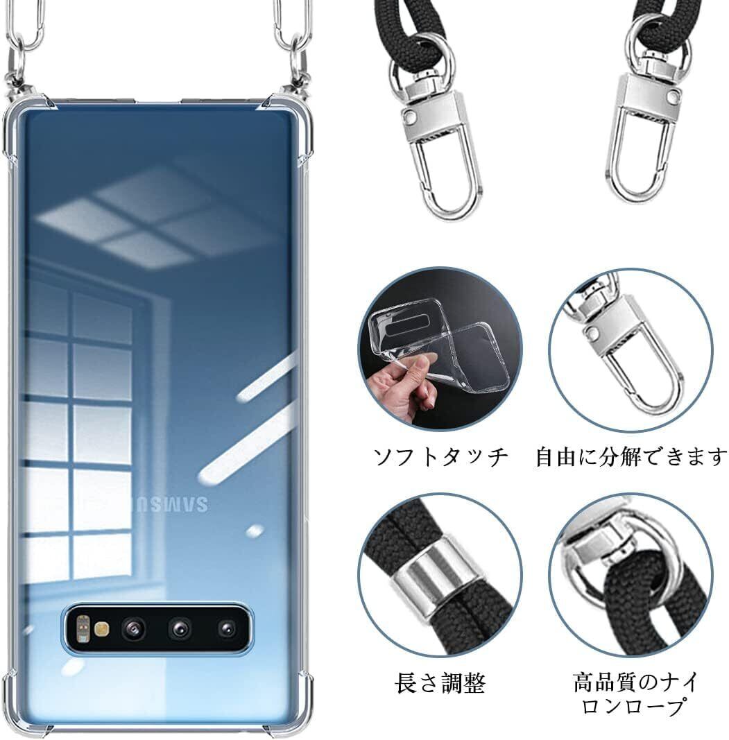 Galaxy S10 ケース ショルダー クリア SC-03L SCV41 カバー 耐衝撃 全面保護 ギャラクシー S10 スマホケース 調節可能 肩掛け 斜めかけ 縄掛けケース 紐付き TPU 薄型 軽量 取り外し可能 落下防止【透明】