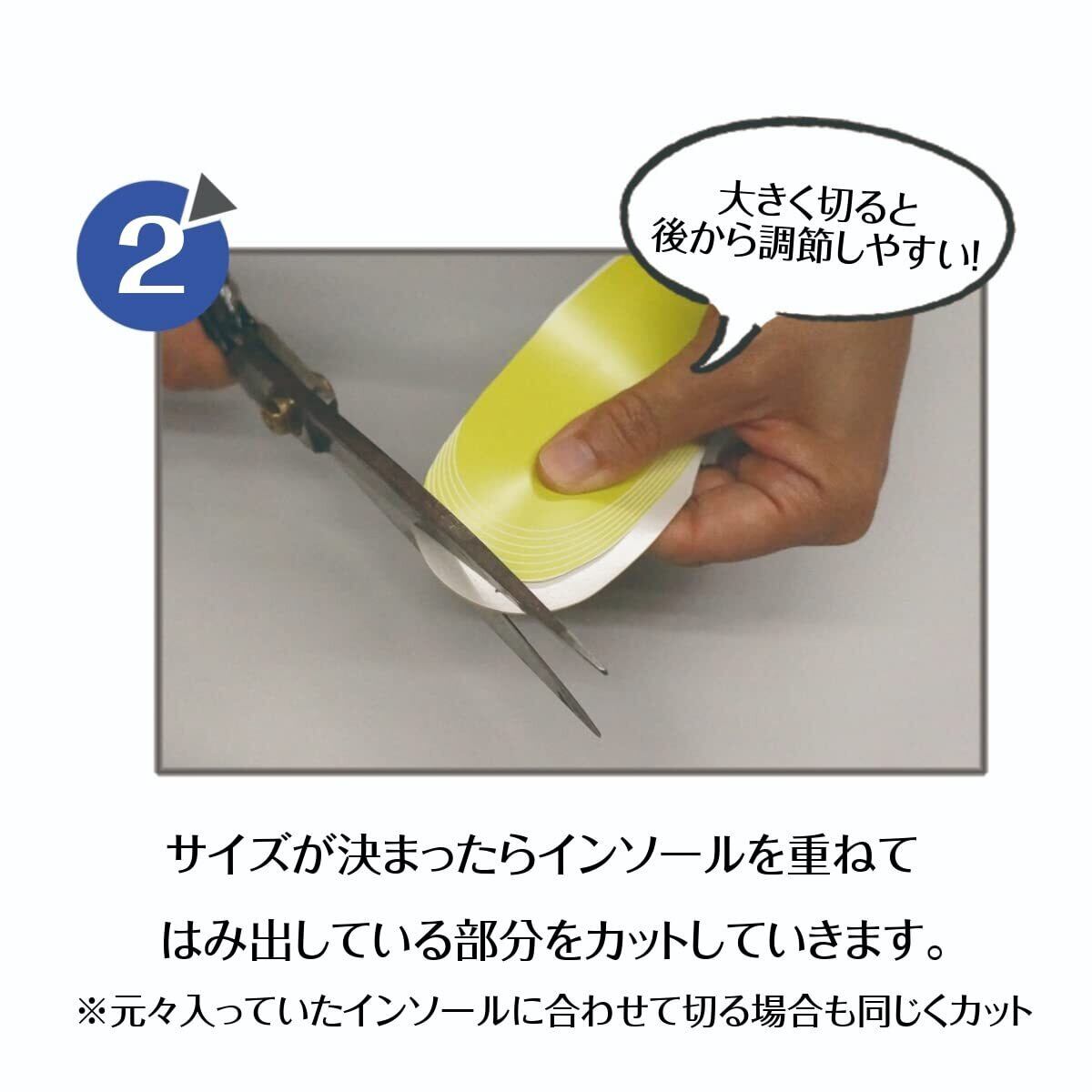 ご使用になる靴のインソールのサイズに合わせてカットします。(つま先やかかと用にもカットしていただけます。)
