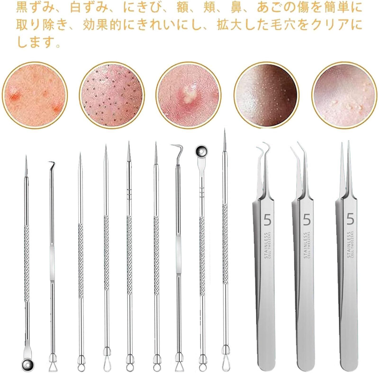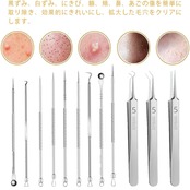 【角栓取り ピンセット】:この角栓取りピンセットはにきび、黒ずみ、にきび、イチゴ鼻などの不純物、ヒエ粒腫を取り除き、赤みを消し、清潔で滑らかな顔を保つのに役立つ。12つの異なる角度と形状のツールを使用して、効果的に清潔にして、拡大した毛穴を取り除くことができます。