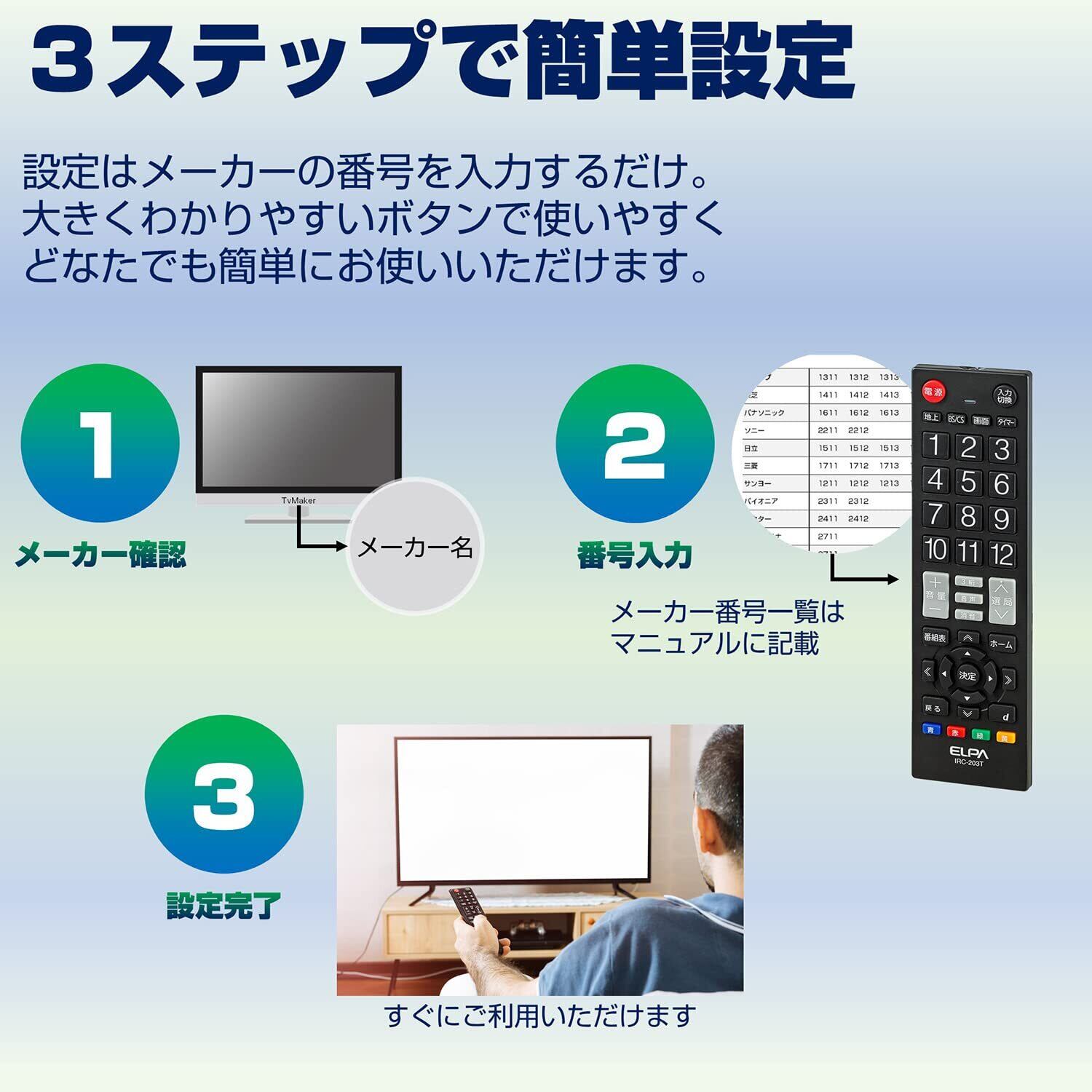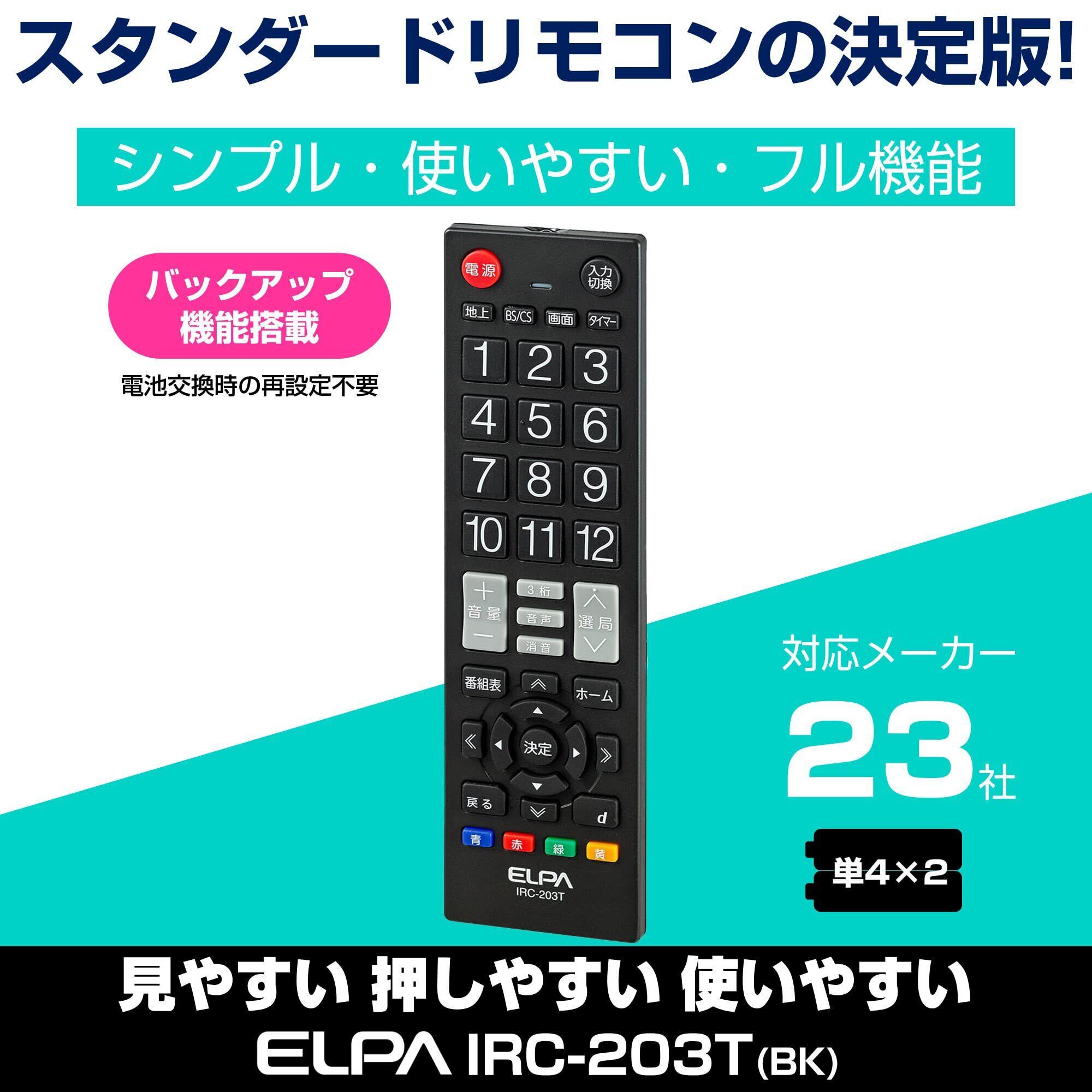 エルパ ( ELPA ) テレビリモコン 国内主要メーカー対応 IRC-203T (BK) ブラック / テレビ リモコン 汎用 / オフタイマー