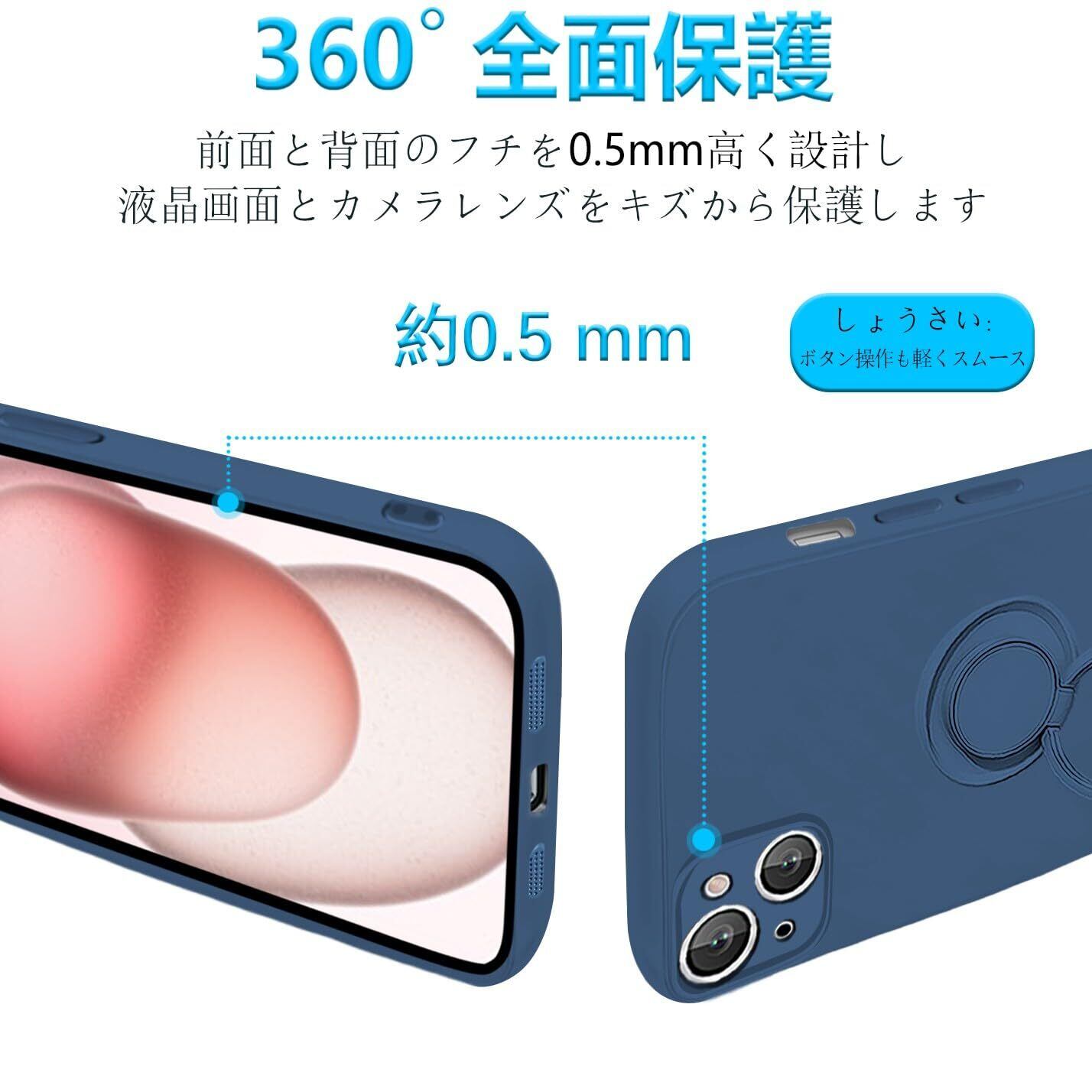 [MiaoKeDa] スマホケース iPhone 15 シリコーン リング ケース 耐衝撃 いpほね 15 リング付き TPU 車載ホルダー ストラップホール付き メッキ ブルー | BASE SHOP